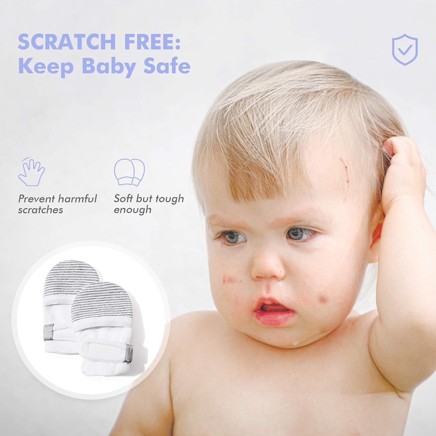• [No Scratch: Keep Baby Safe]: These Anti Scratch Baby Mittens are designed to prevent harmful scratches & thumb sucking, also a big help with things such as Eczema, Dry Itchy Skin, Pulling hair, NG Feeding Tube and Squeezing during Breastfeeding