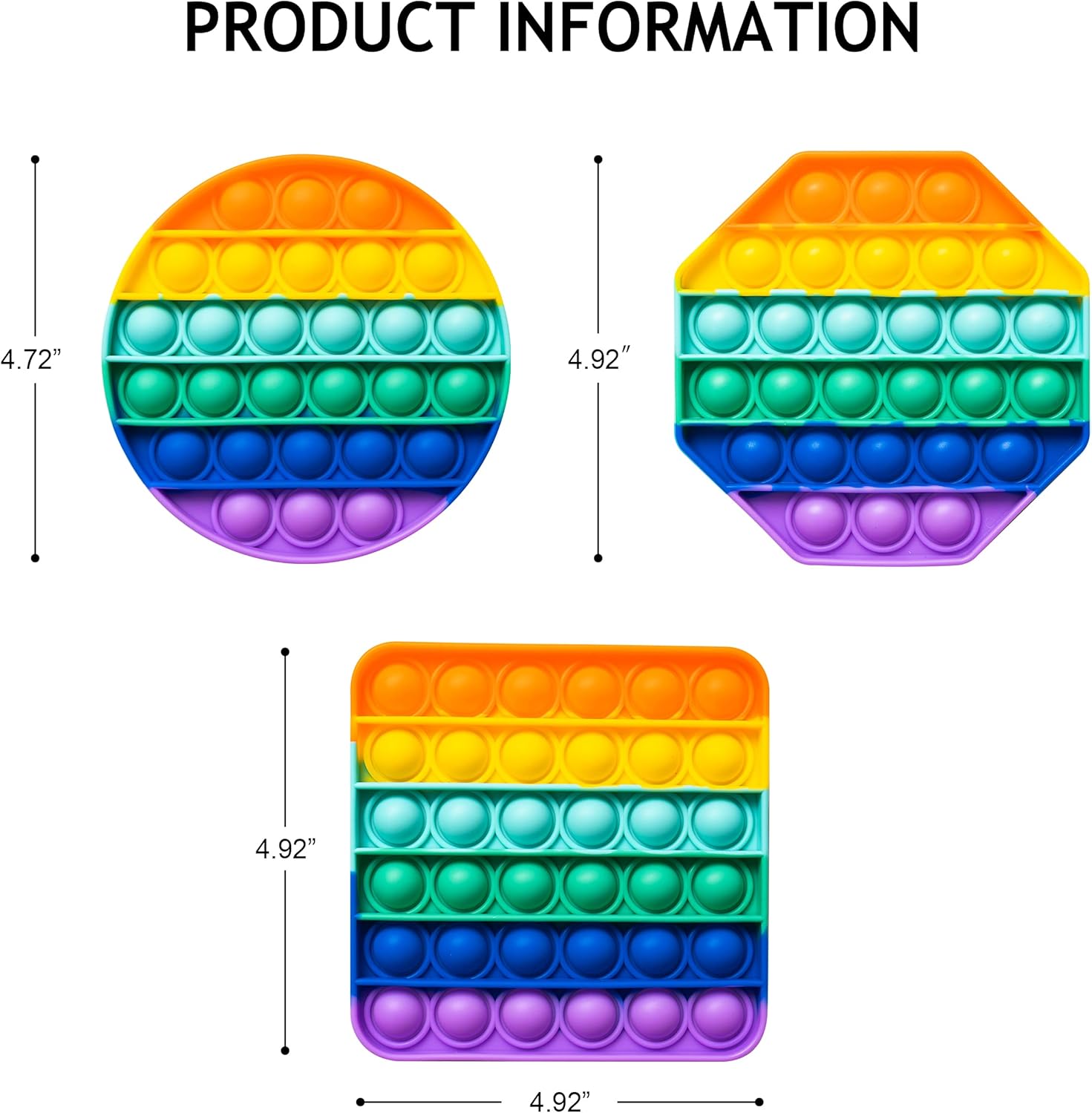 3 Pack Rainbow Push pop Bubble Sensory Fidget Toy - Pop up it fidget toy - Autism Special Needs Stress Reliever - Silicone Squeeze Sensory Toy (3 Pack - Rainbow)