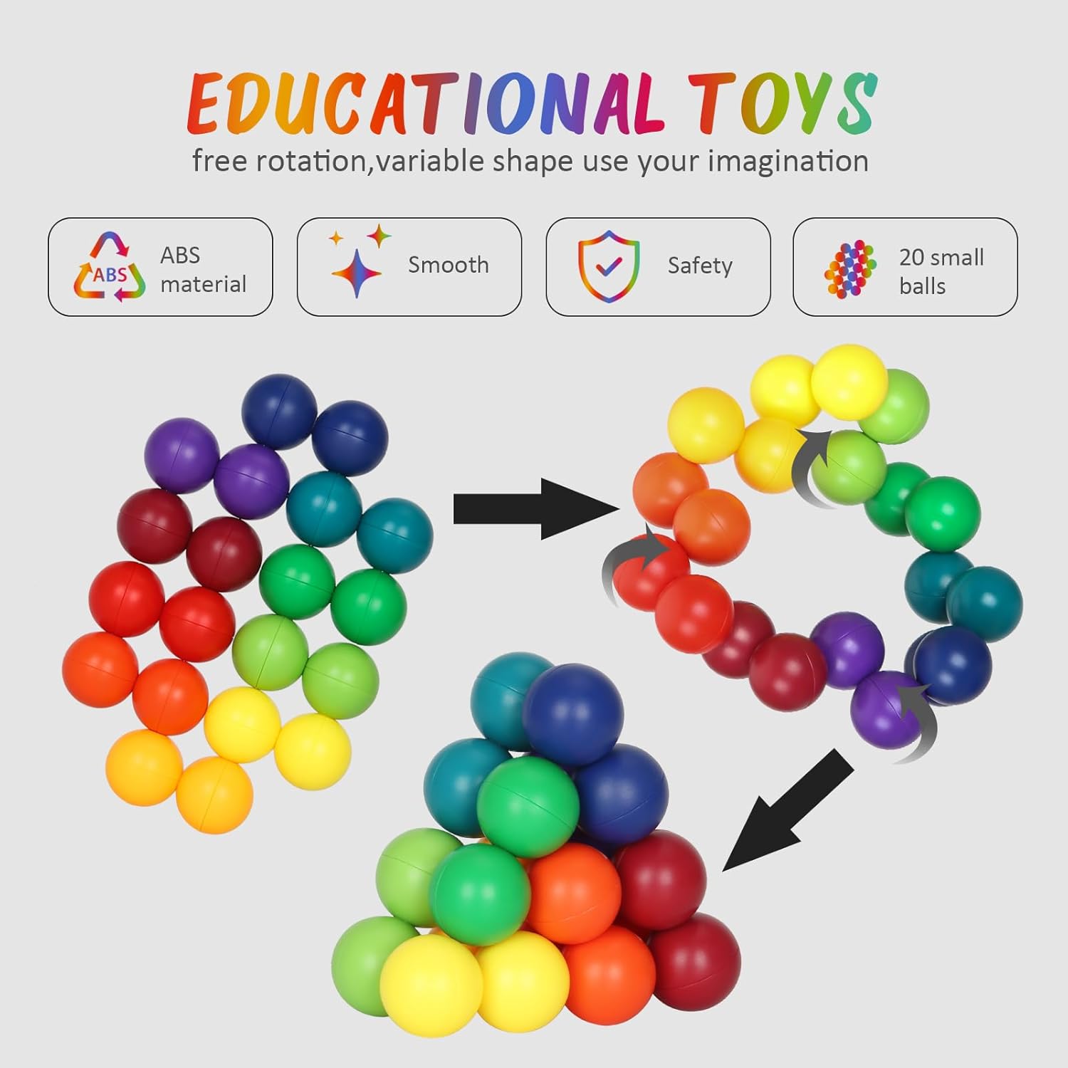 - - Sensory Fidget Toy: This educational ball is a fun sensory toy that combines 20 small balls into different shapes through rotation, attracting children's attention with its 10 different colored balls.