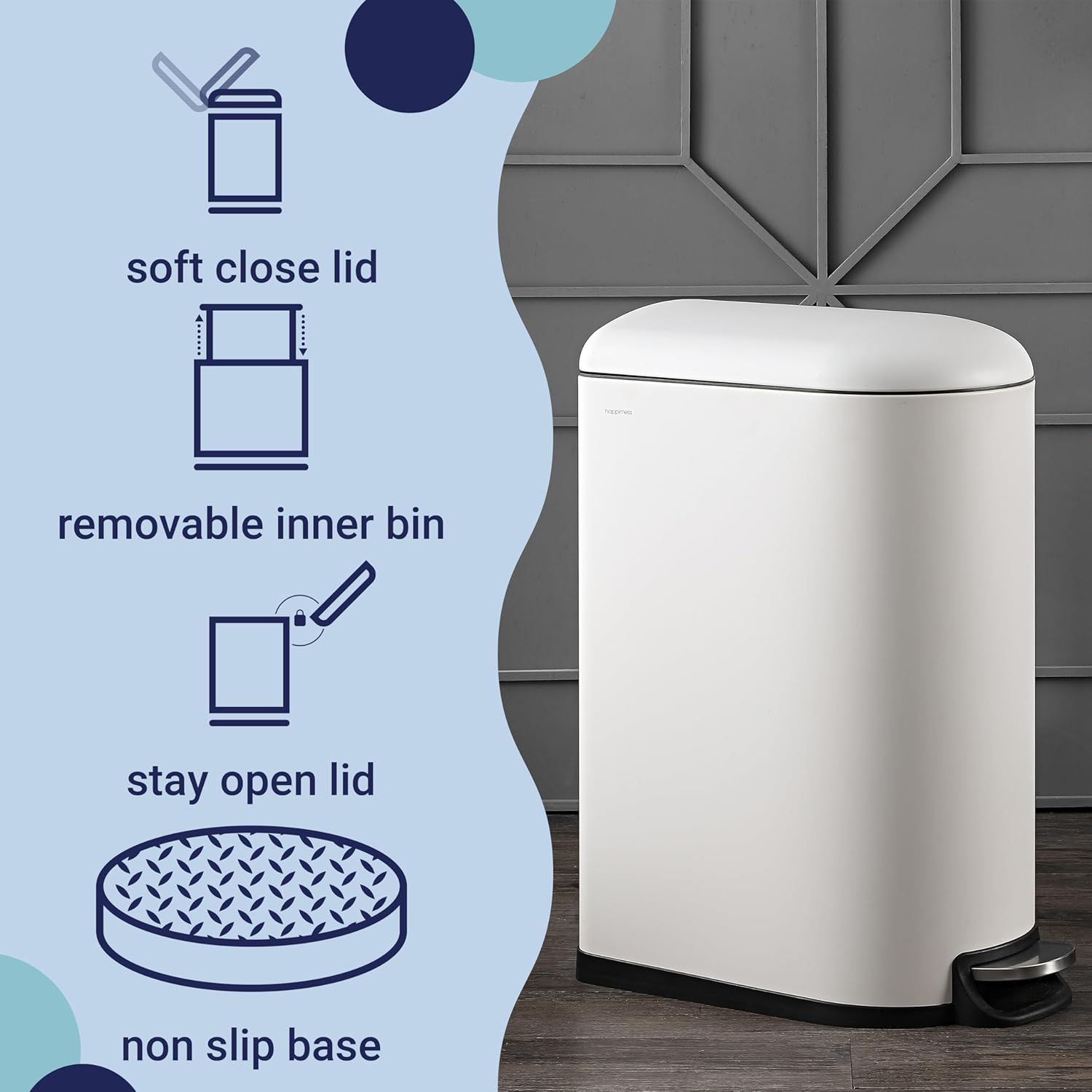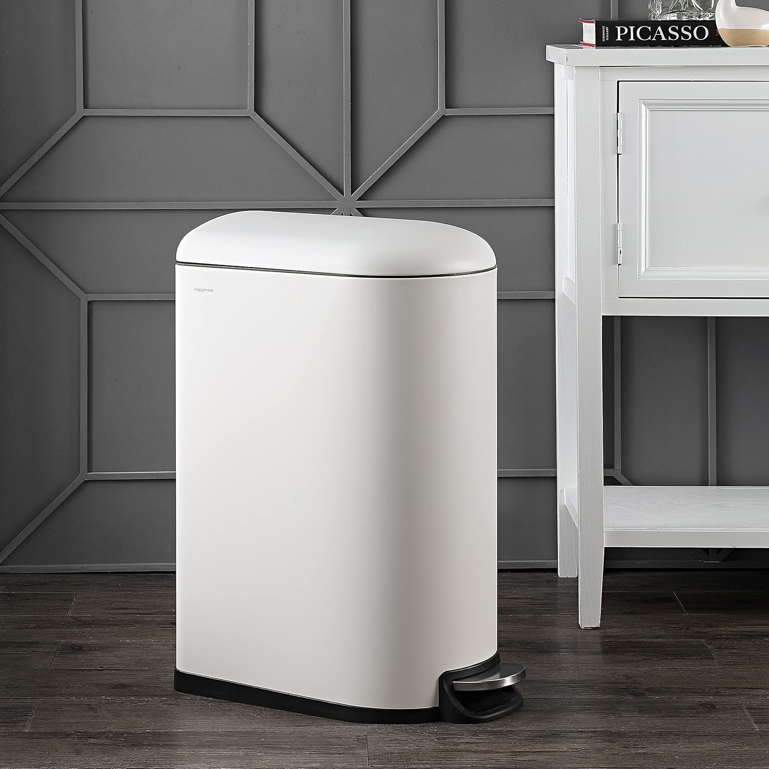 - STYLISH & PRACTICAL DESIGN: happimess Trash Cans clean-lined designs blend beautifully into your existing decor; Dispose of trash hands-free with our convenient step pedal; built-in damper lowers the lid quietly, and closes it tightly to keep odors inside