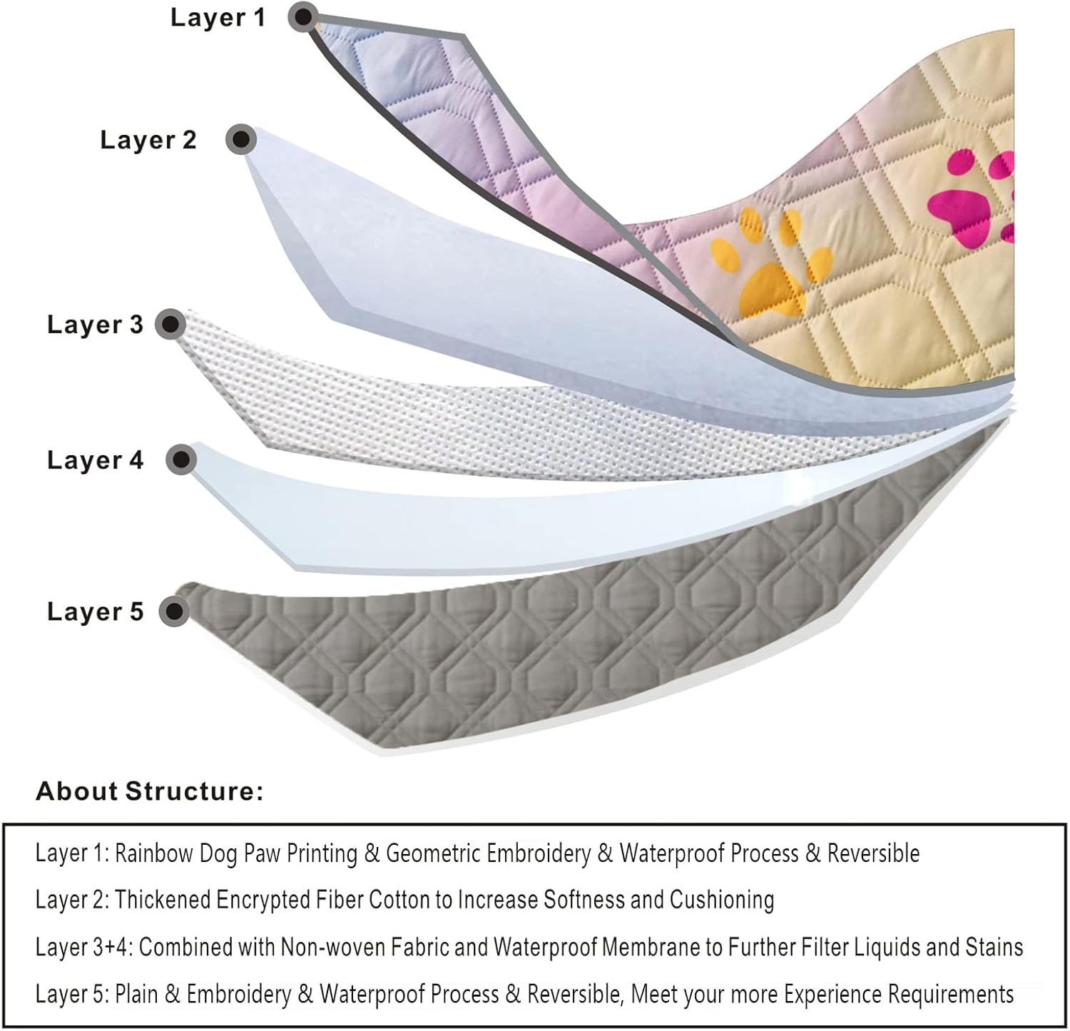 - The Rainbow Dog Paw Printed PetBed Blankets is Made of 5 Layers of High-density Composite Materials. TheSurface + Bottom are Geometric Embroidered + Color Matching Printed with Rainbow Dog Paw Printed + Water Resistant + Reversible + Reusable + Brushed. It NotOnly has a Three-Dimensional Luxury Visual Enjoyment, But Also Doubles the Prevention of Liquid Stains.Leakage, Feel Upgraded to be More Comfortable and Fit.