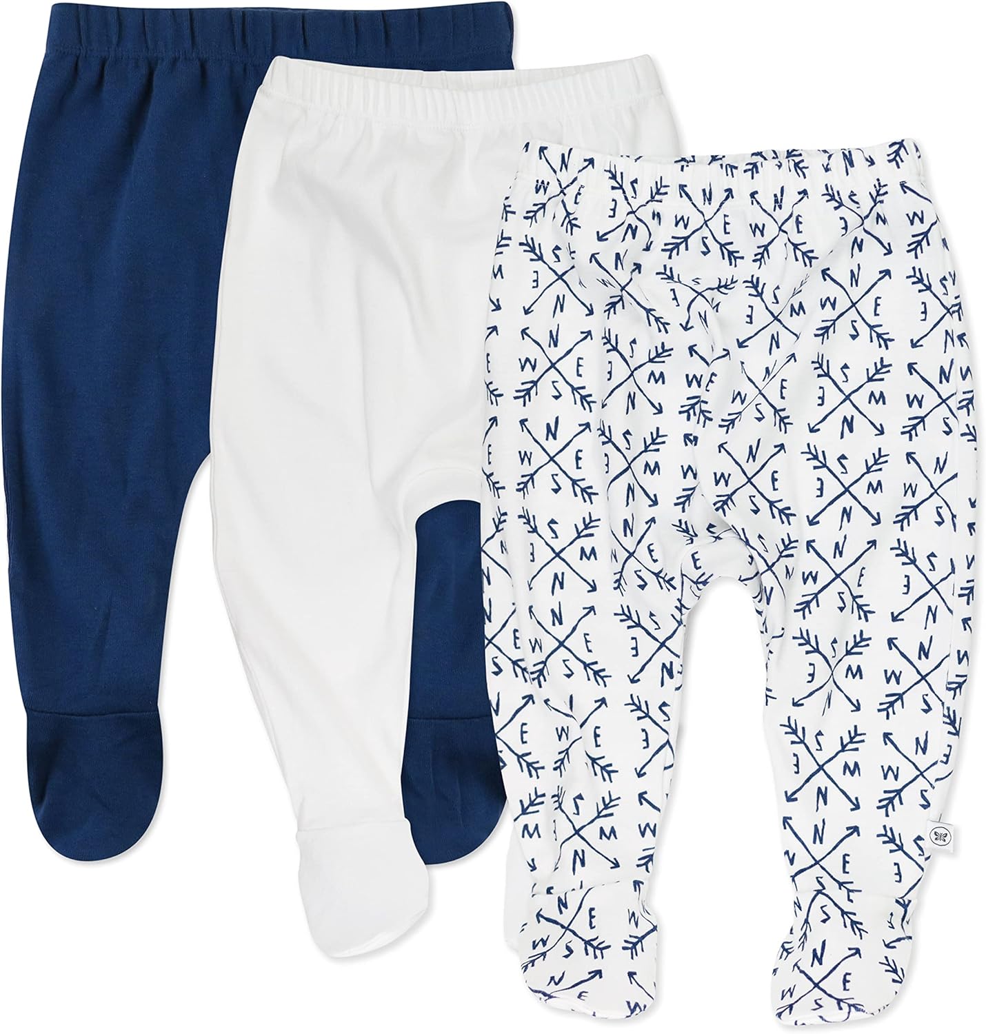 HonestBaby 3-pack Footed Pants Roomy Fit Pull on Bottoms 100% Organic Cotton for Infant Baby Boys, Girls, Unisex