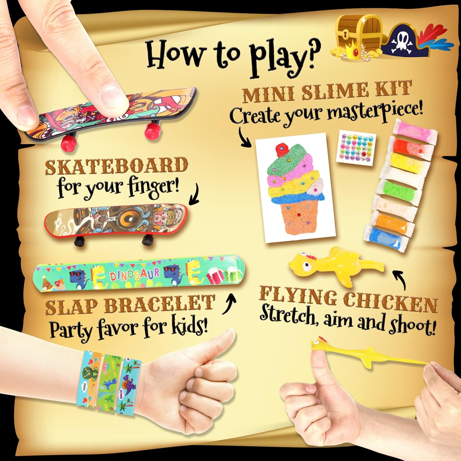 - 【Treasure Box Designed】The packaging box is designed to look like a treasure box, It would be a perfect gifts for classroom prizes, classroom rewards,pinata filler, goodie bag fillers, treasure box prizes, carnival prizes for kids, party favors assortment for boys and girls, party giveaways, prize box toys, treasure chest toys, etc. Kids will be excited to get it and enjoy these prizes and toys for a long time.