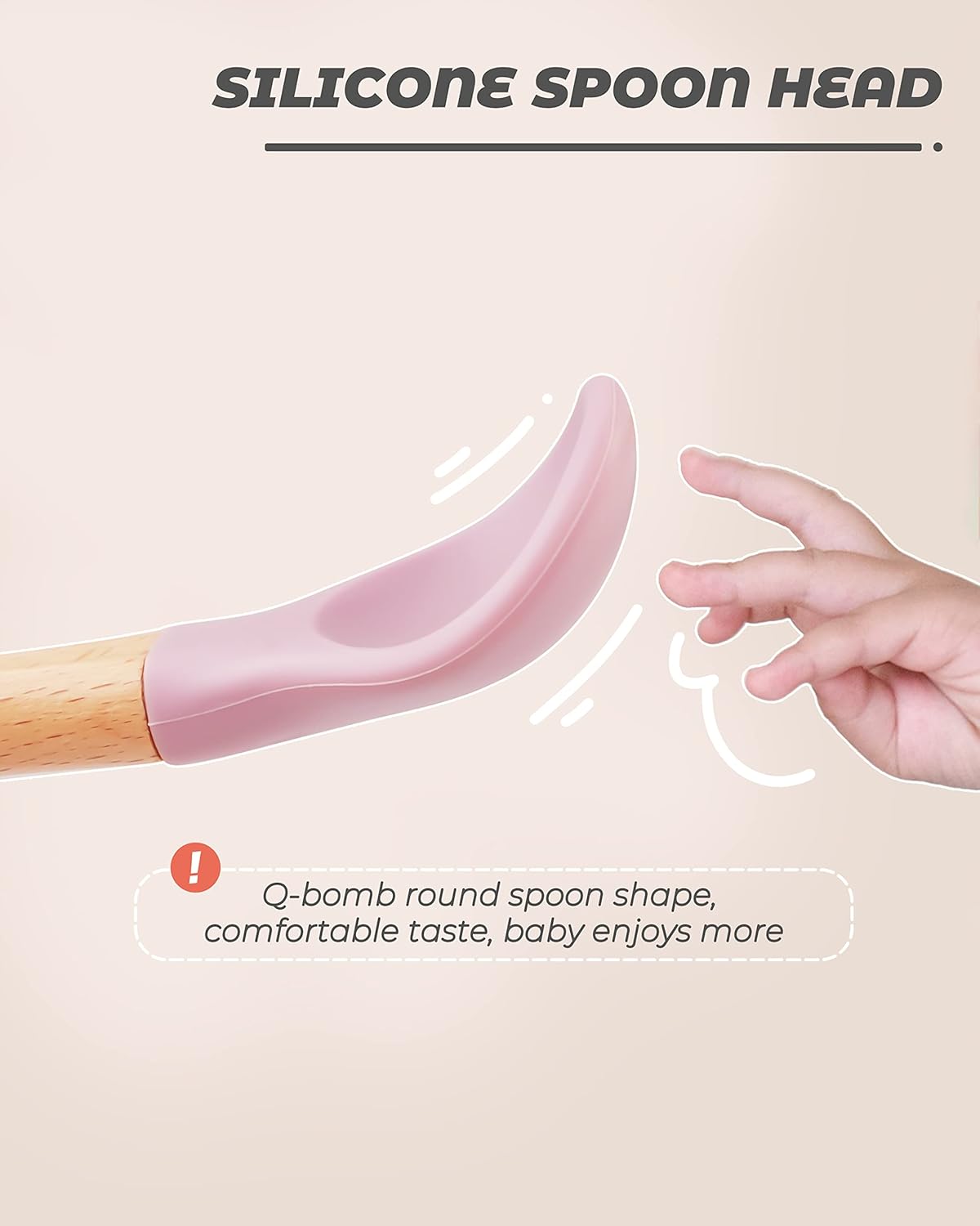 - SILICONE FORKS AND SPOONS: Baby spoons and baby forks made of silicone are soft so you don't have to worry about bumping or scratching your baby's gums.