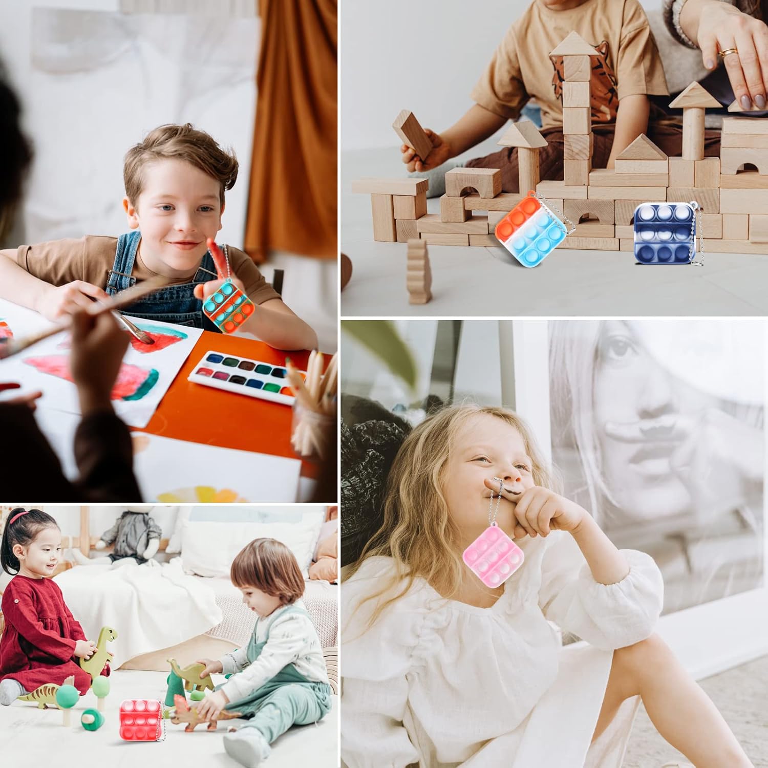 - πΉ Entertainment and Joy: These mini pop keychain are great for everyone.Fidget toys are durable and comfortable to the touch, and kids will love them and keep popping them. It can be reused and cleaned. It's waterproof so you can play anywhere, bathroom, pool, seaside.