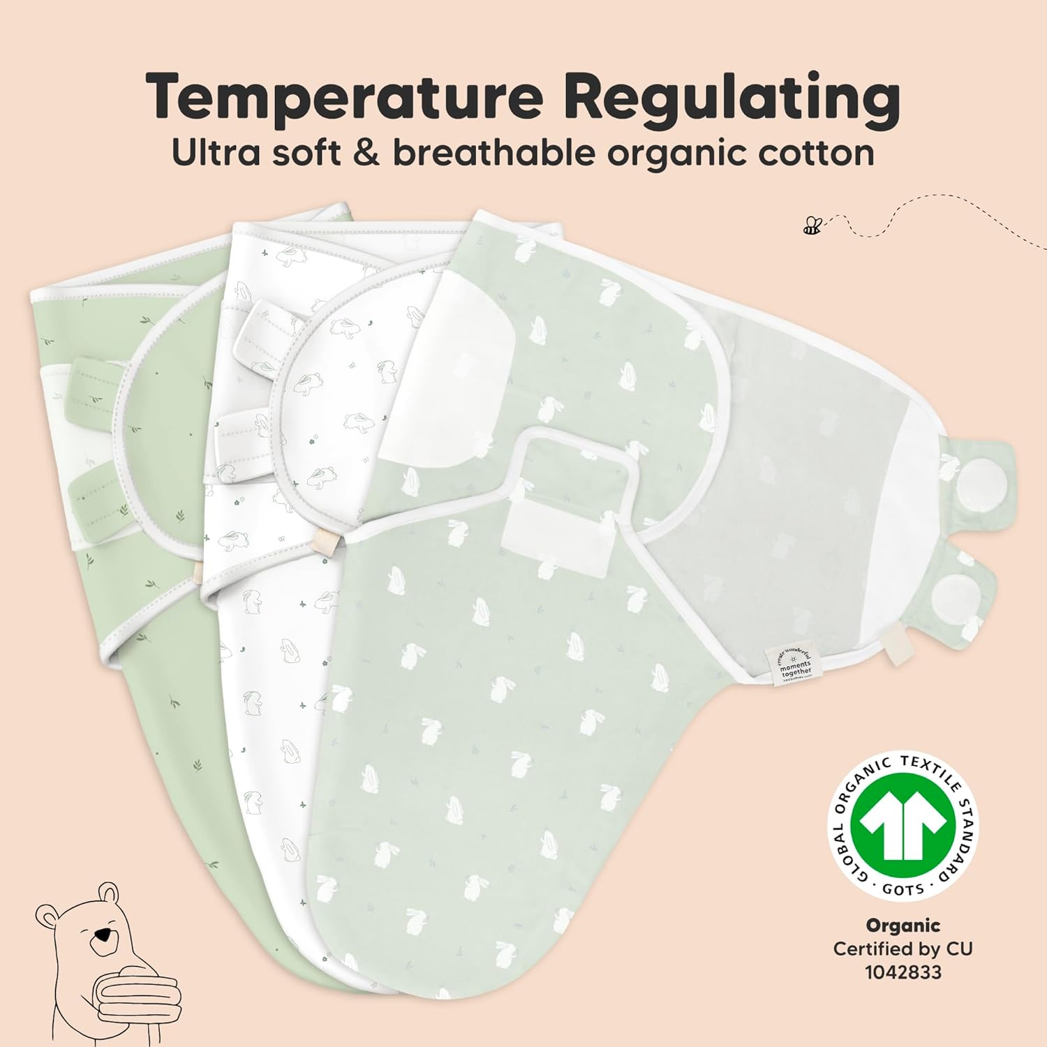 - Breathable & Temperature-regulating - Our Soothe Swaddle for newborns is made with ultra-soft Organic Cotton (GOTS Certified by CU 1042833), it is lightweight and highly breathable which makes it a highly-raved newborn swaddle sack for all seasons.