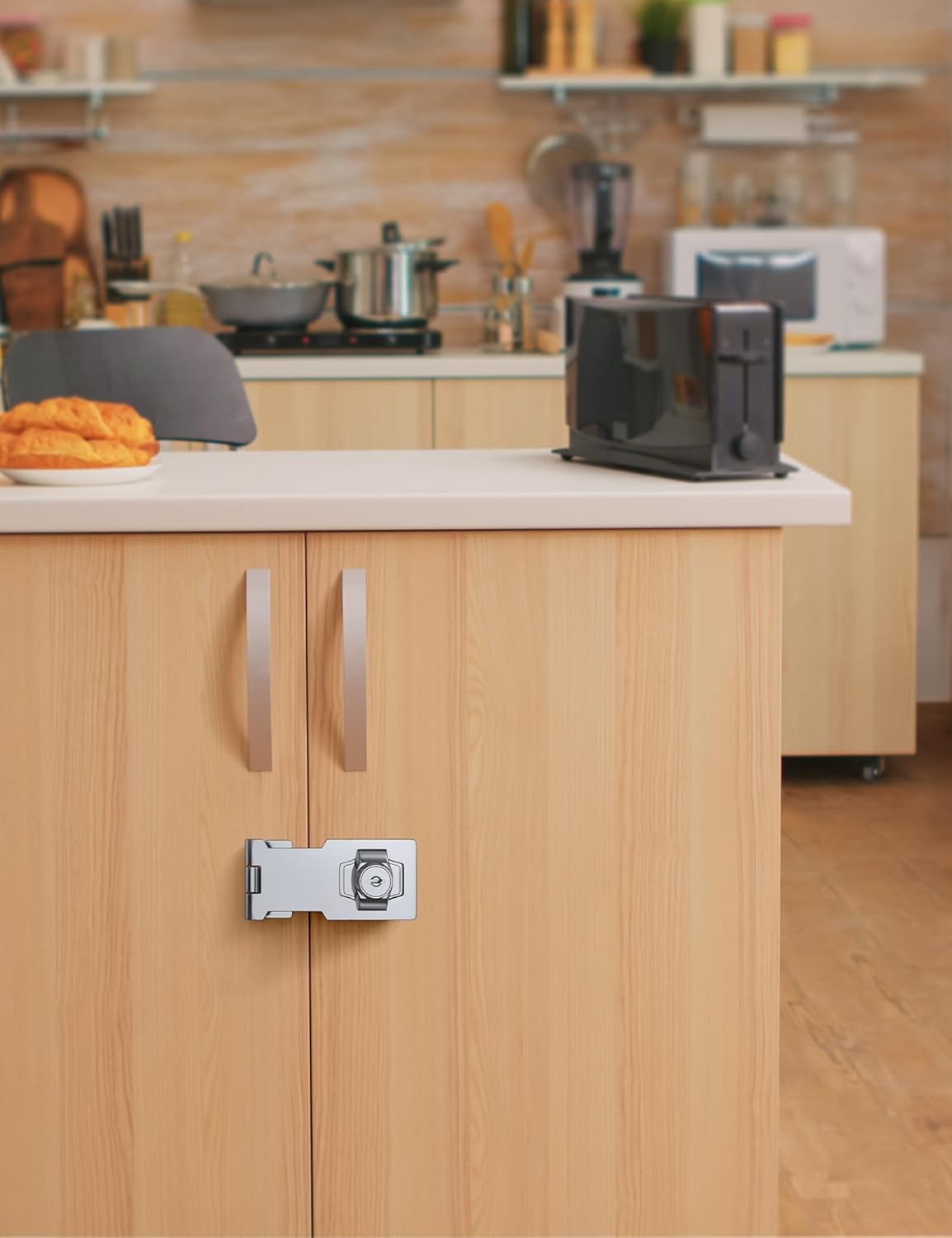 3 Inch Keyed Hasp Lock for Cabinets & Small Doors, Twist Knob Design, Heavy Duty Zinc Alloy with Chrome-Plated Iron, Includes Keys & Screws - Silver, 2 Pack