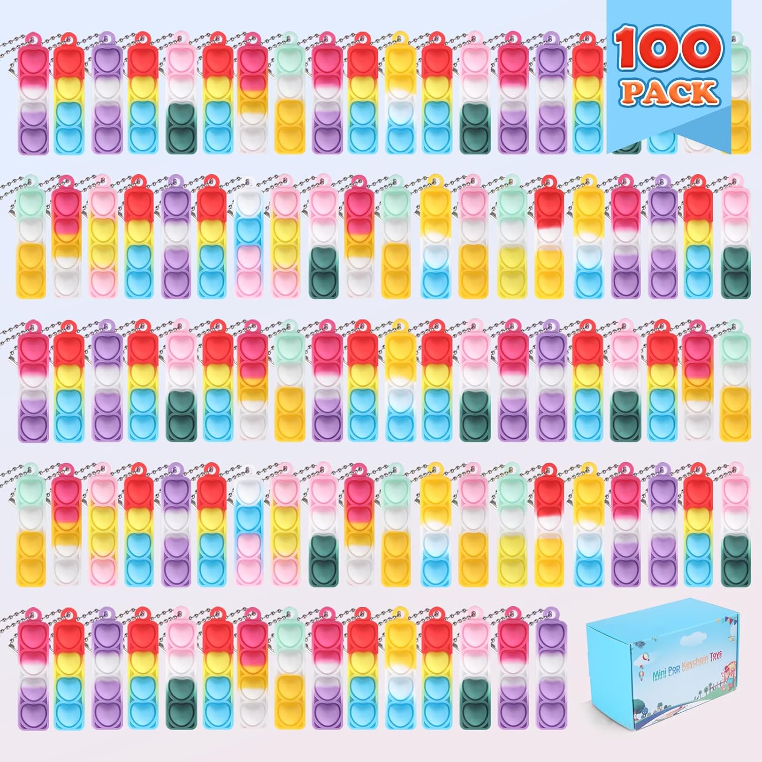 100Pcs Mini Pop Fidget Toys Bulk Party Favors for Kids Pop Keychain Sensory Toys Bag Fillers Pop Toddler Carnival Treasure Easter Classroom Prizes Stress Reliever Anti-Anxiety Toy for Boy Girl