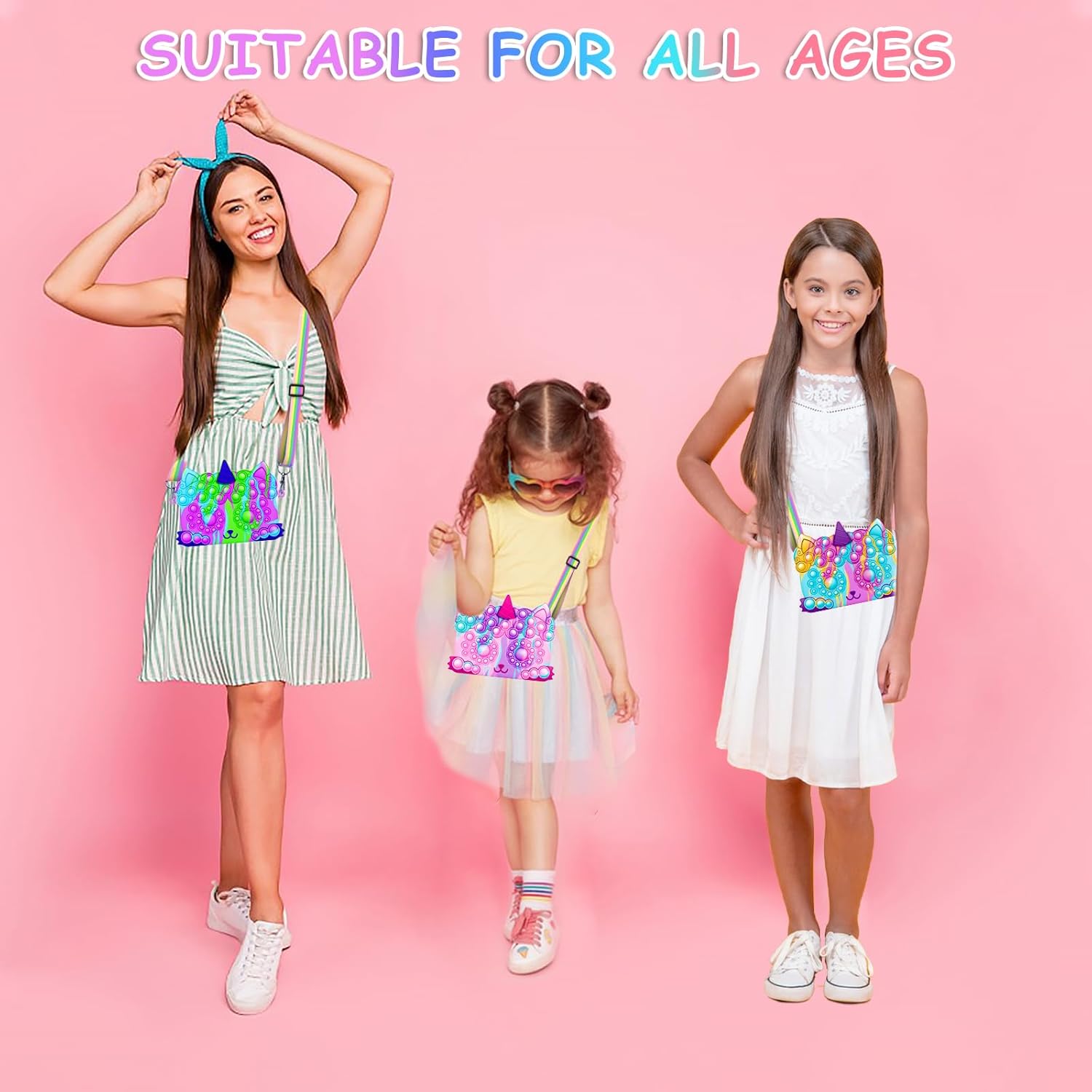 - Great Sensory Fidget Toys: 2 Pack Unicorn Purse Pets- A push bubble fidget toy, A purse wallet and A shoulder bag (3 in 1). Pressing the bubbles on the bag will make "POP" sound which is attractive. The push bubble shoulder bag is the most popular designed for stylish girls and kids. Suitable for girls of all ages.