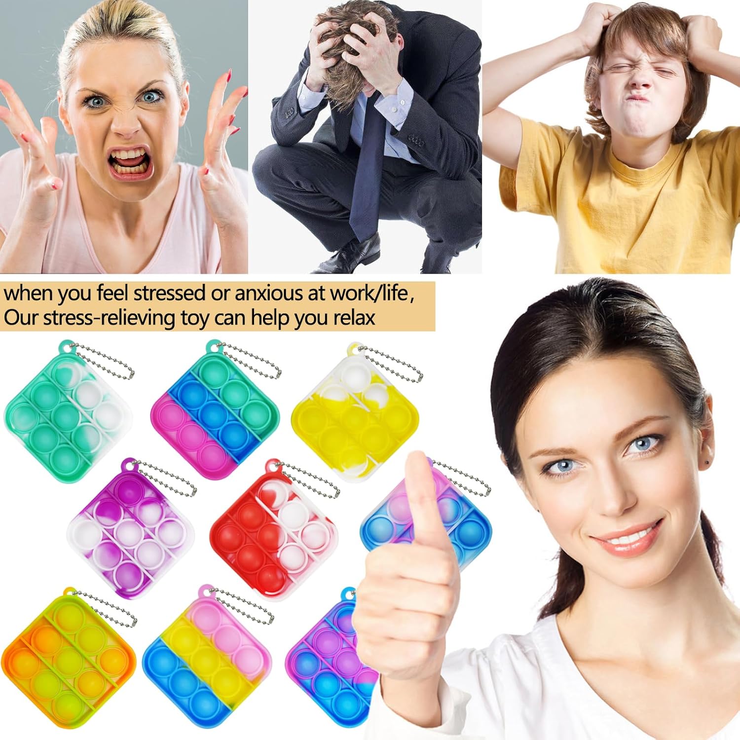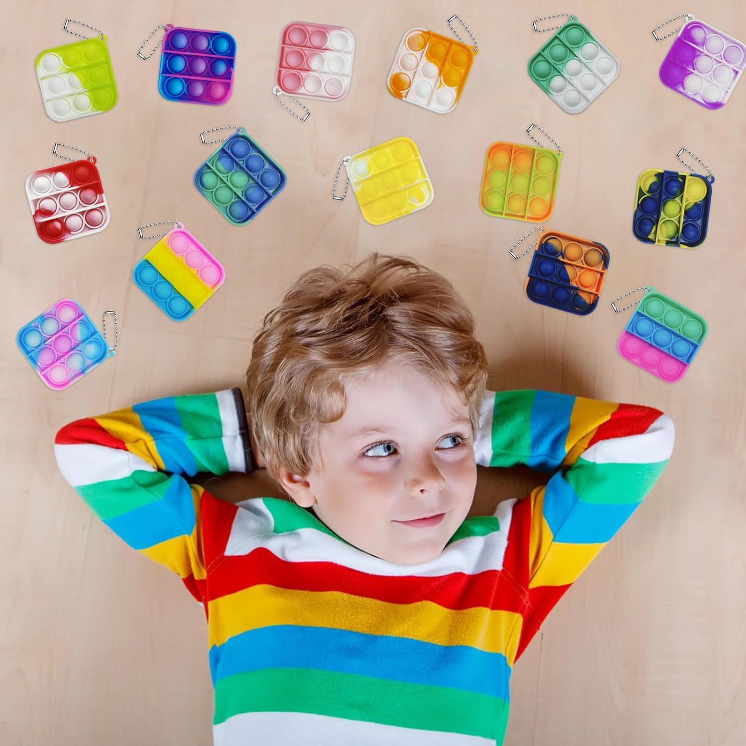30 Pcs Mini Pop Bubble Fidget Toys for Party Favors, Small Silicone Pop Keychain Bulk for Goodie Bag, Classroom Prizes Stuffers Christmas Valentine Gifts for Kid Students