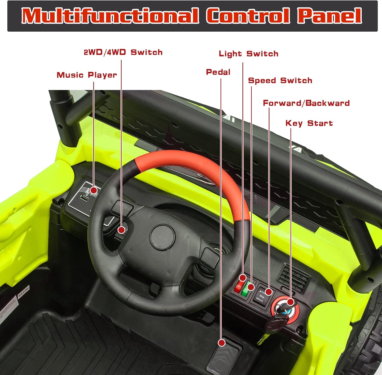 - 2 DRIVING MODES- Your kids can manually drive the ride on car by steering wheel and pedal to enjoy an independent off-road adventure! If your kid is too young to drive, the 2.8GHz parent remote control mode allow you to control the car to avoid potential dangers.