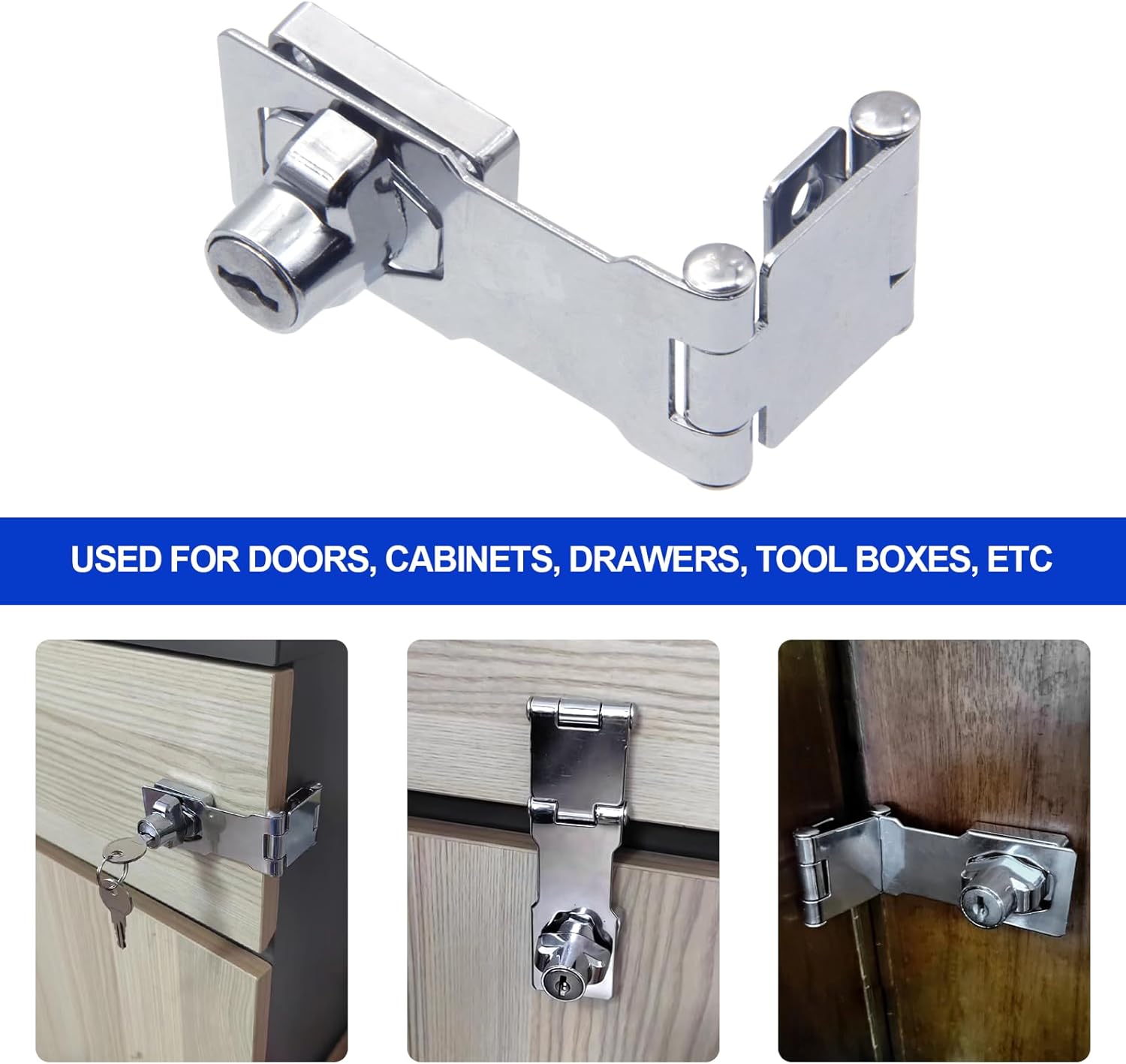 2 Pack Door Lock Hasp Latchs, Collapsible Solid 304 Stainless Steel File Cabinet Lock Desk Drawer Lock, for 90 Degree and 180 Degree Drawers, Dabinets, Doors, Flip Barn Door (Individual Key)