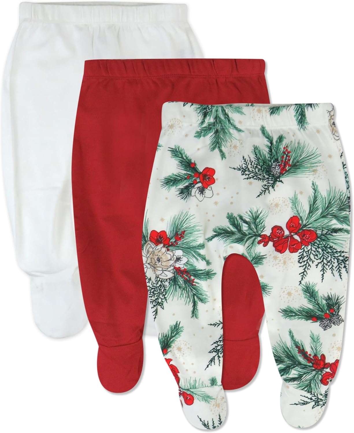 HonestBaby 3-pack Footed Pants Roomy Fit Pull on Bottoms 100% Organic Cotton for Infant Baby Boys, Girls, Unisex