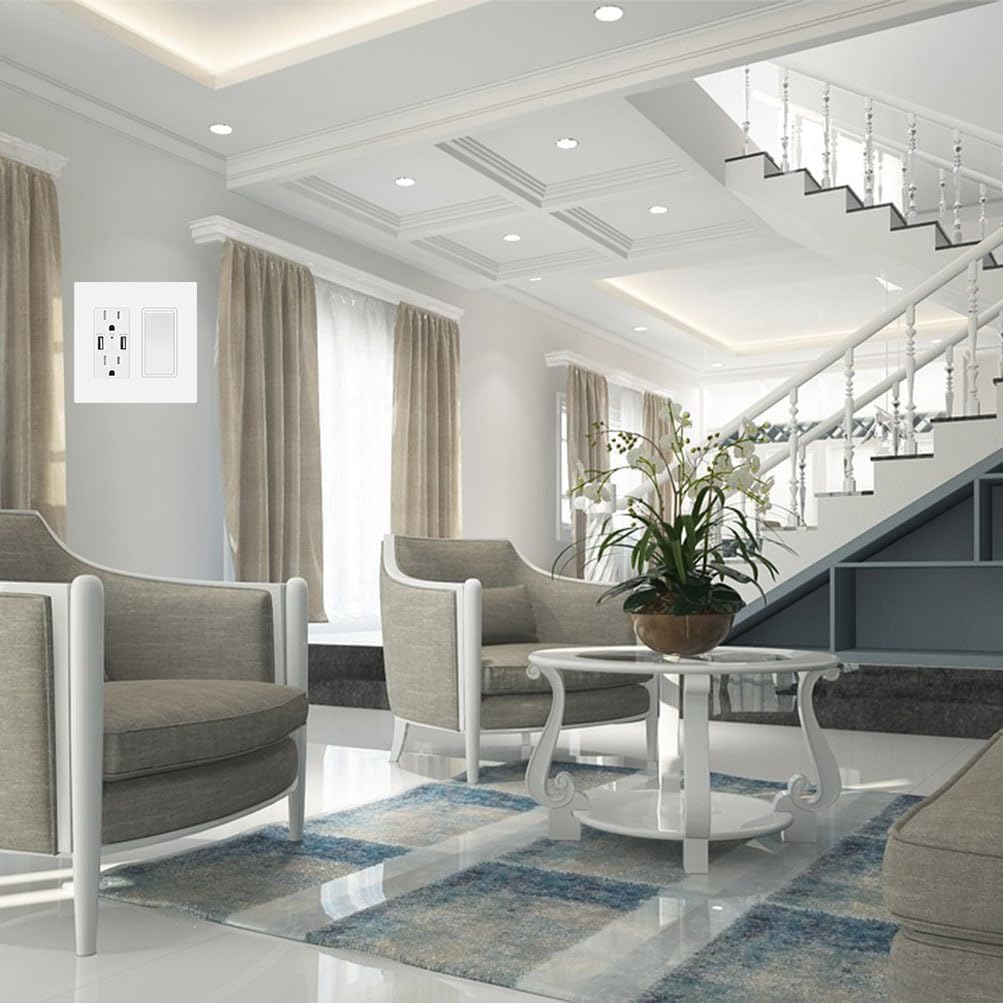 - 【Compatible Widely】single wall plates work with all kinds of decorator-style switches and outlets including dimmer, light switch, smart switch, rocker switches, sensors, timer switches, GFCI outlets, electric outlets and and single/double/compo switches, etc.