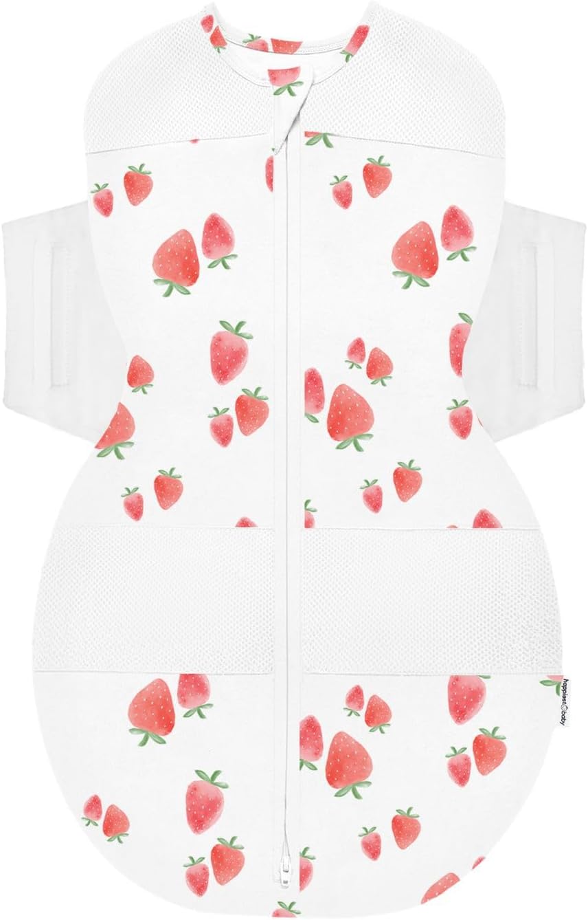 Happiest Baby SNOO Sleep Sack - 100% Organic Cotton Baby Swaddle Blanket - Doctor Designed Promotes Healthy Hip Development (Ivory Strawberries, X-Large)