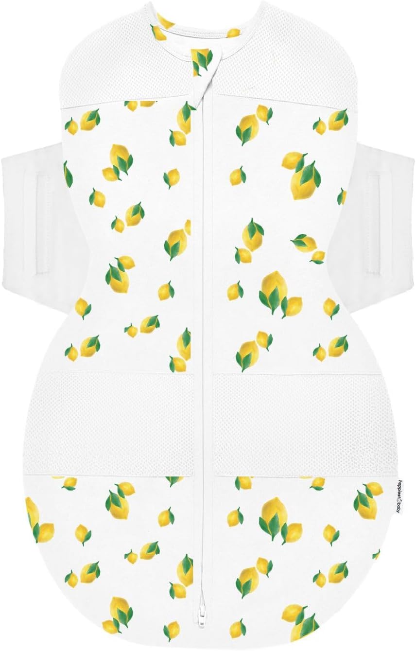 Happiest Baby SNOO Sleep Sack - 100% Organic Cotton Baby Swaddle Blanket - Doctor Designed Promotes Healthy Hip Development (Ivory Lemons, Large)