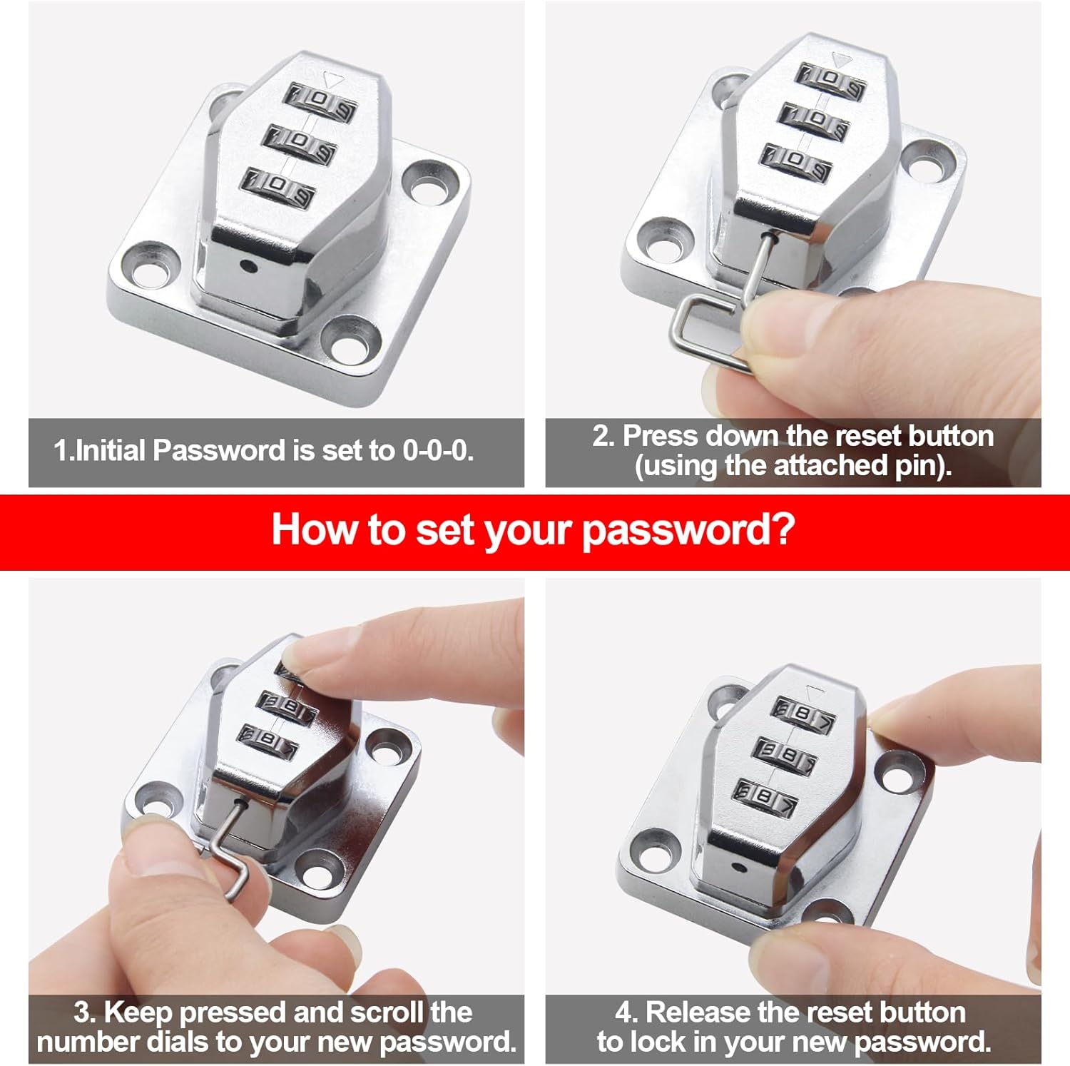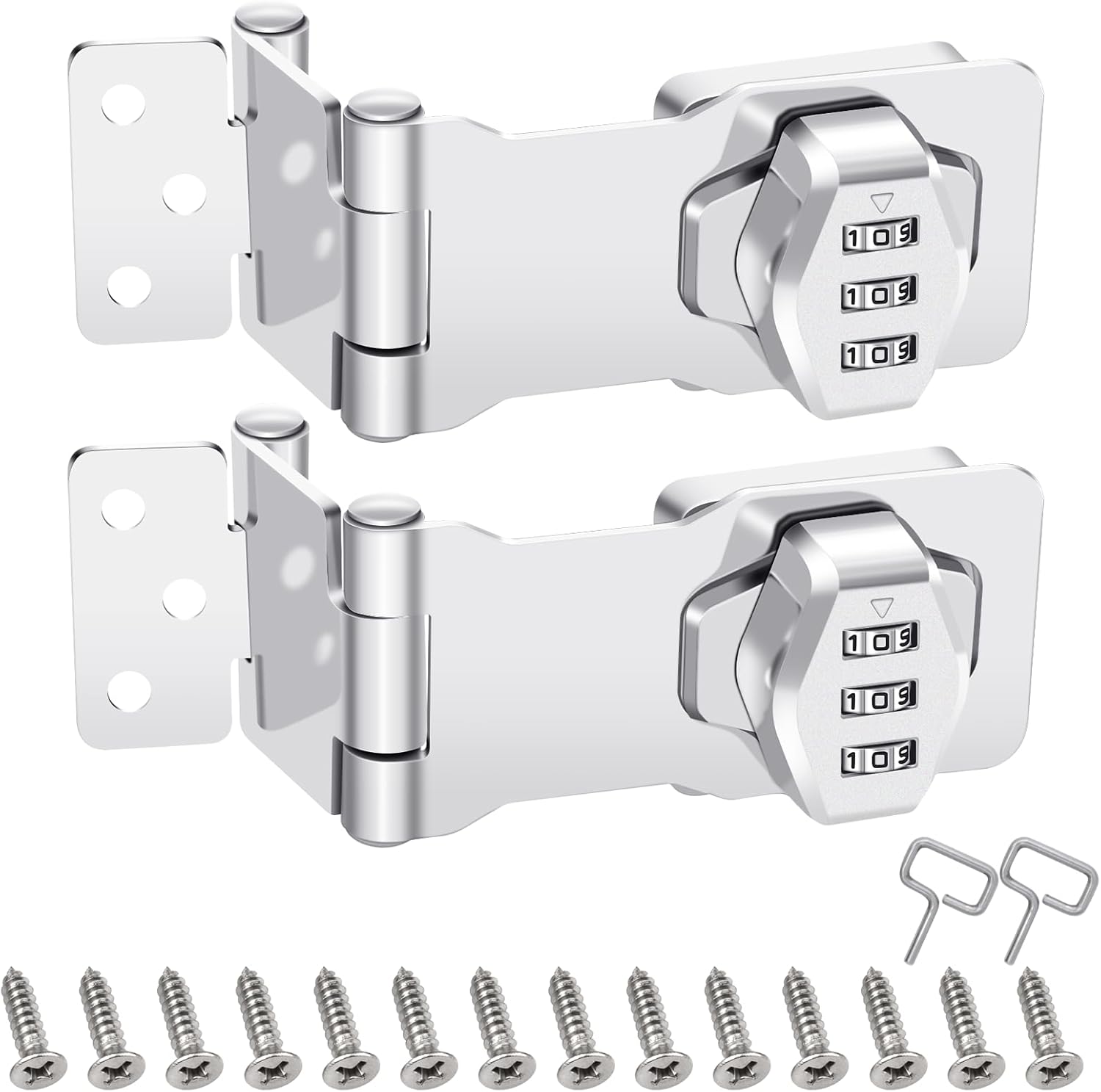 2 Pack Password Rotary Hasp Locks, Collapsible Solid 304 Stainless Steel File Cabinet Lock Desk Drawer Lock, for 90 Degree and 180 Degree Drawers, Dabinets, Doors, Flip Barn Door, Outdoor