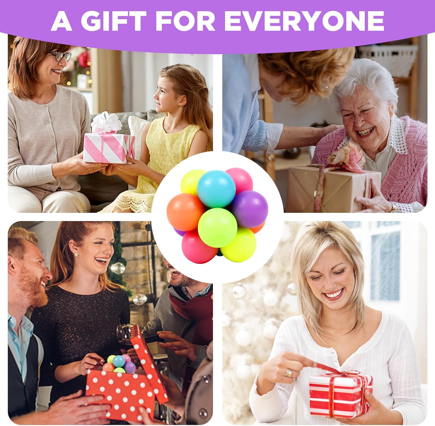 - Kids Sensory Toys: Our atomic stress balls are the perfect addition to toddler toys. You'll get 2 sensory balls size1.9 inch that are not only a fantastic stress-relief tool for adults but also an engaging fidget toys for kids 8-12. The bright colors and a design consisting of a series of elastic squeeze balls make it visually appealing, aiding in sensory development for toddlers 1-3. These fidget balls are ideal for holiday party supplies and make great exchange gifts for kids.