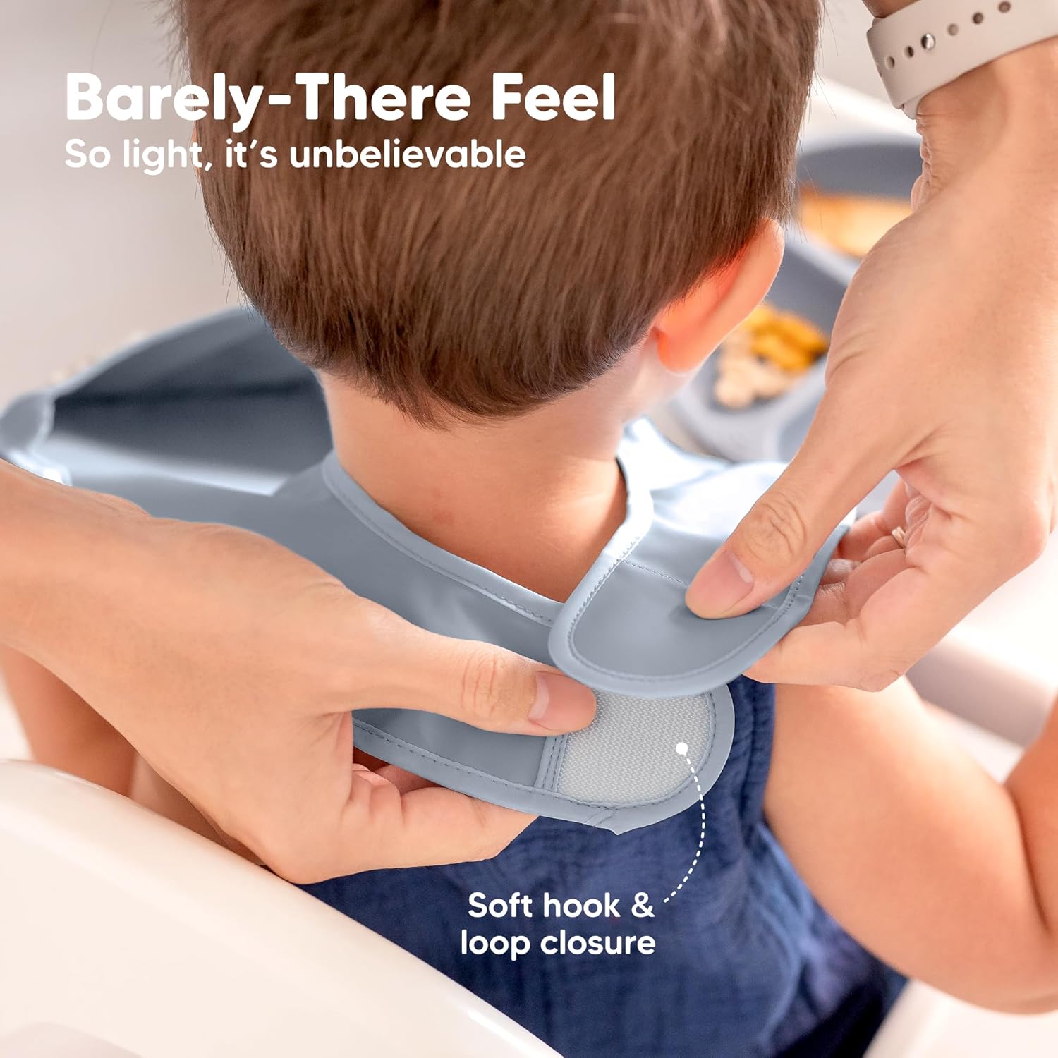 3-Pack Waterproof Baby Bibs for Eating - Lightweight Toddler Feeding Bibs with Large Food Catcher, Mess Proof, Food-Grade Baby Eating Essentials, Easy to Put On & Clean (Slate)