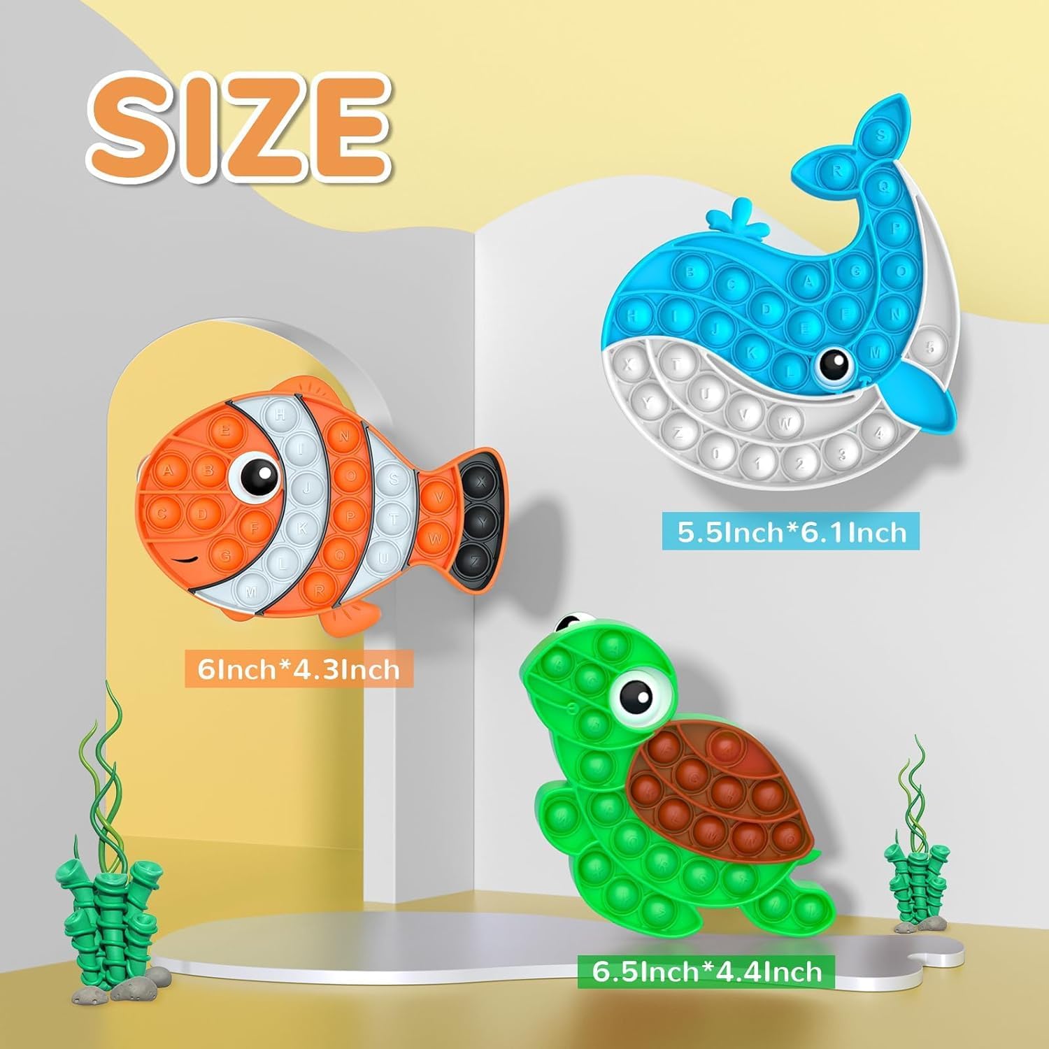 - 【Educational Tool】: There are English letters on each one, which can be used for kids' letter learning. What's more,the player presses any number of bubbles in a row, and the player who presses the last bubble will lose the game. How do you force your opponent to press the last bubble? In this game, the kids can exercise mathematical thinking, logical ability, reasoning strategy, mental arithmetic, think ahead and fine motor skills.