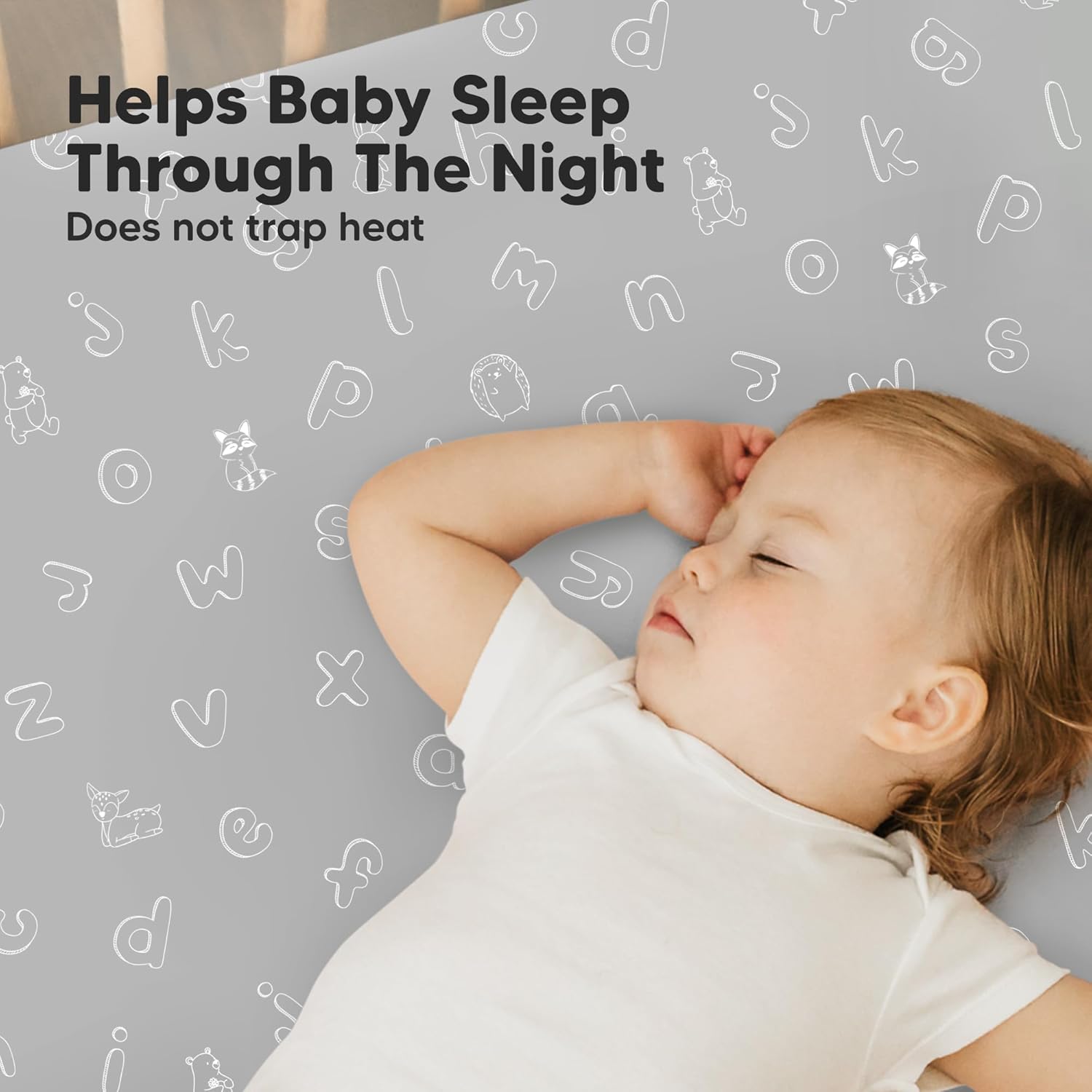 2-Pack Mini Crib Sheets Fitted - 38x26 Pack N Play Sheets for Pack and Play Mattress, Organic Cotton, Soft & Breathable Playard Bedding, Neutral Mini Toddler Bed Cover for Boys, Girls (ABC Land)
