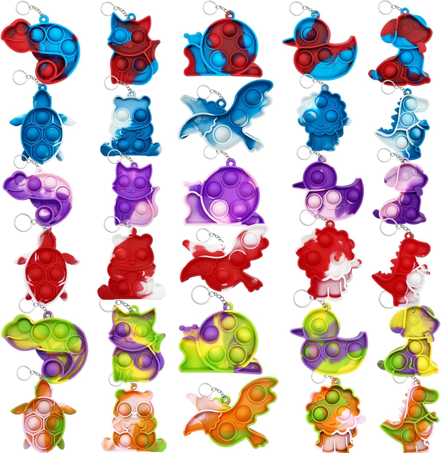 - Preferred Gift: When you give our animal pop keychain to yourself or to someone you care about. The exquisite and fidget keychain bulk toys will all be unforgettable! Perfect gift for students, kids party favors, kids birthday gifts, classroom rewards, Halloween gifts, Christmas gifts Valentine's Day, loot bag fillers.