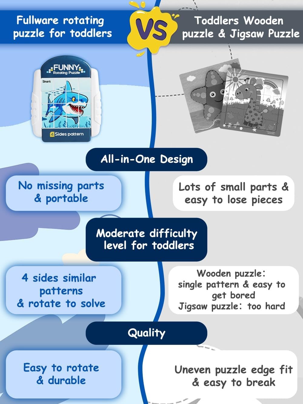 - A HANDY TOY FOR OUTINGS - Whether in the car or at a restaurant, our compact Rotating Puzzles can be carried along and keep children quiet and occupied. Moreover, there is no risk of missing pieces after playing with this all-in-one design puzzle!