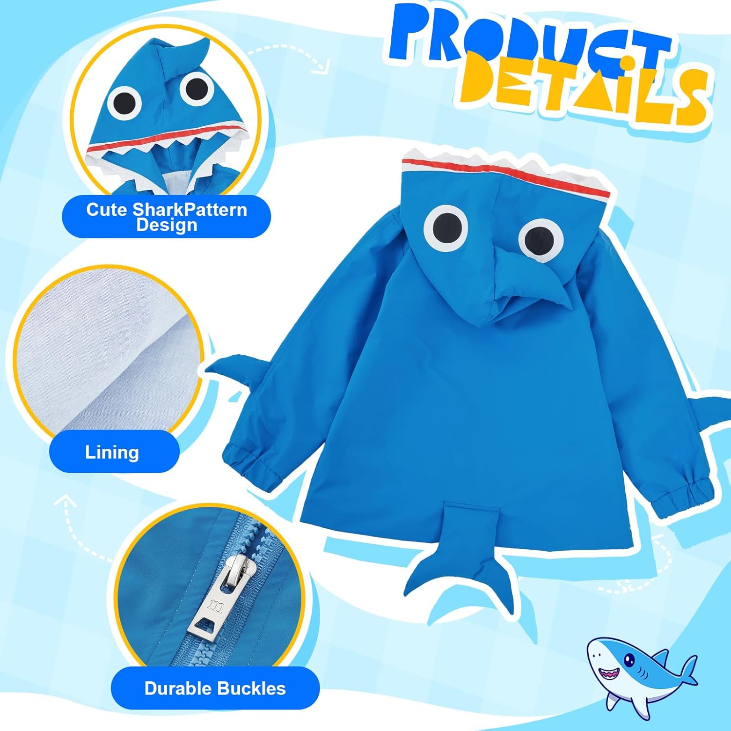 - Adorable Design and Color: our blue raincoat has a lovable shark design that adds a cute touch; The raincoat is lovely and vivid, and will make your toddler gets excited about wearing their rain coat