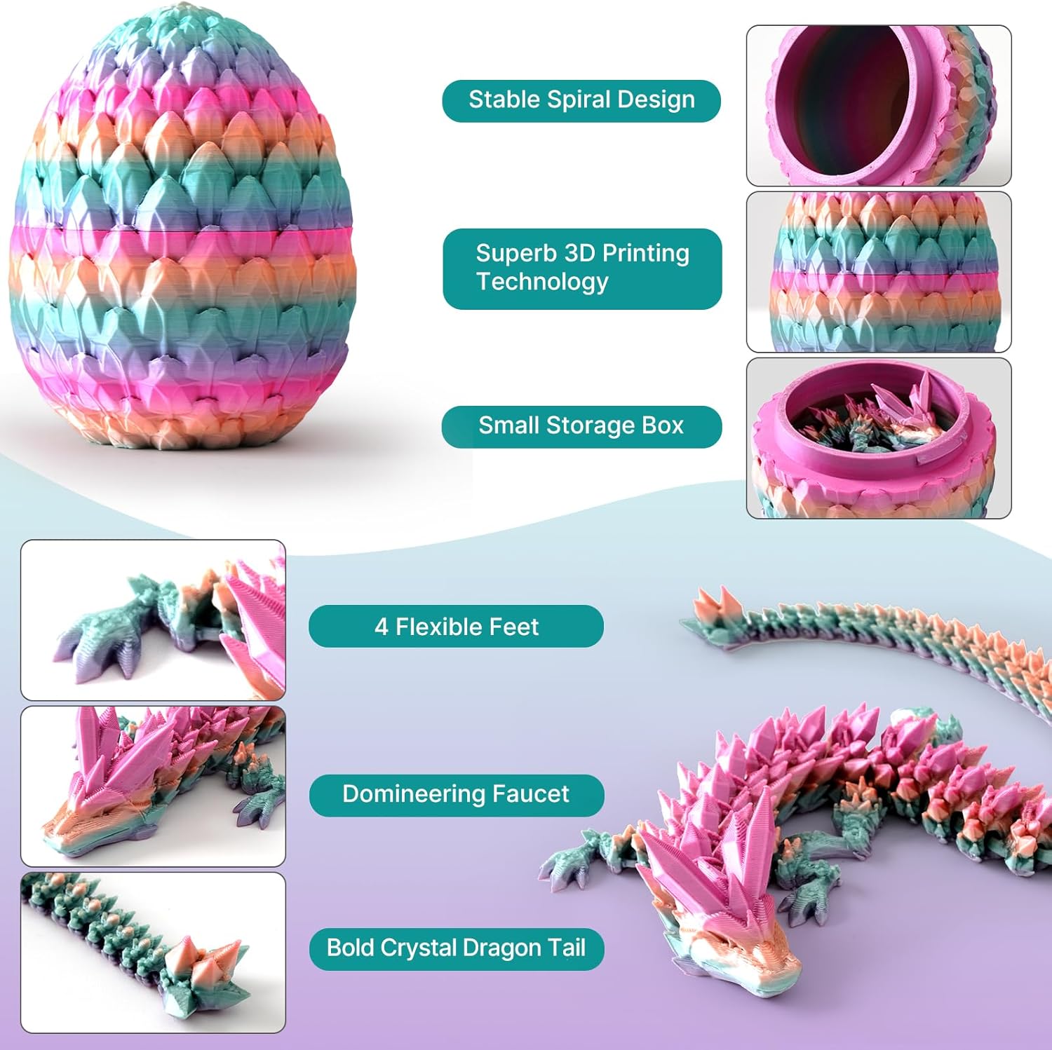 - High-quality Materials:You will get a wing dragon and an egg,the dragon is 9 inches in full length and the egg is 8.6 inches.Fidget dragon is crafted from harmless,high quality PLA material using 3D printing technology