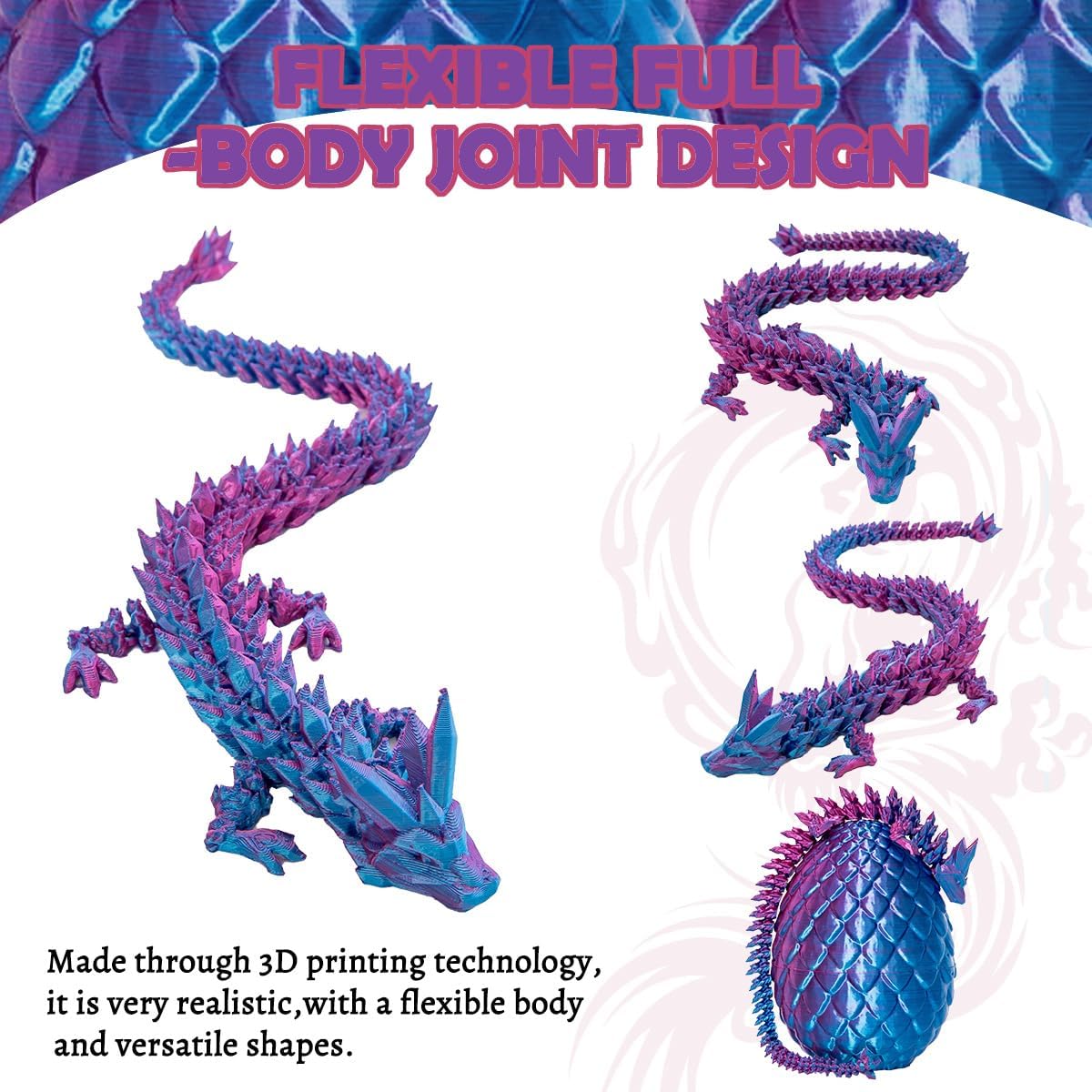 3D Printed Dragon Eggs with Dragon Inside, 12In Laser Purple Dragon Egg Fidget Toy, Executive Desk Articulated Dragon Toy, Home Office Decor