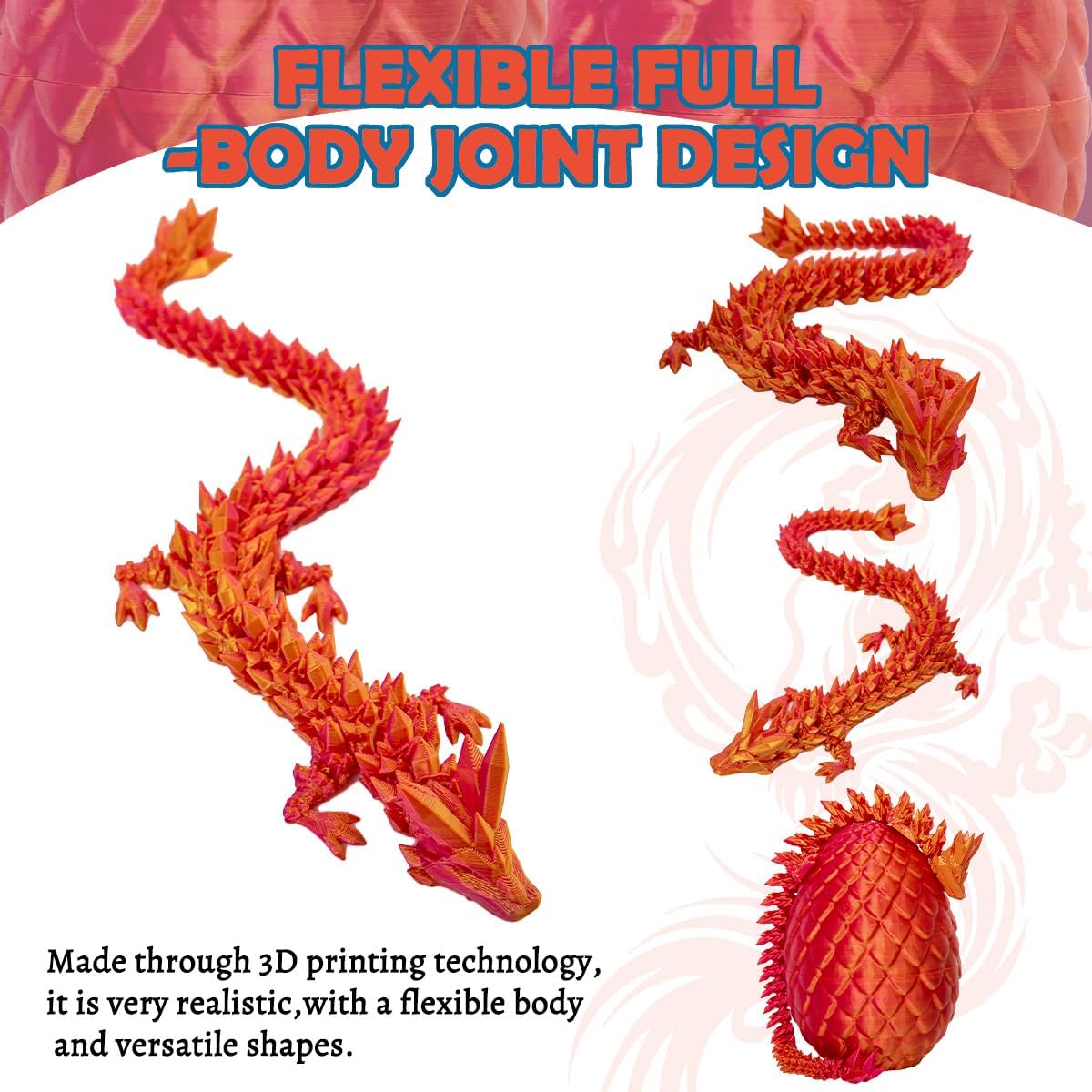 3D Printed Dragon Eggs with Dragon Inside, 12In Laser Red Golden Dragon Egg Fidget Toy, Executive Desk Articulated Dragon Toy, Home Office Decor