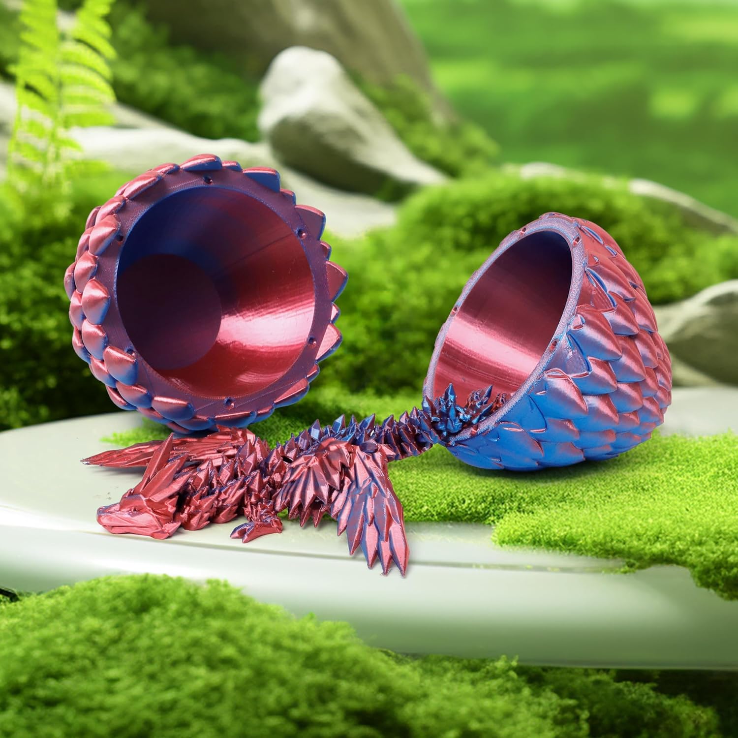 3D Printed Dragon Egg, Flying Articulated Dragon in Eggs, Flexible Joints Home Decor Executive Desk Figurine (Red Mix Blue)