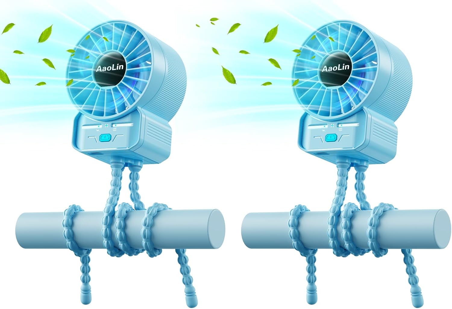 2 Pack Multifunctional Portable Stroller Fan 4 Speed 6600rpm High Speed Usb Rechargeable Personal Mini Handheld Fan Extended Tripod for Desktop Winding Kids Bed Treadmill Bike Golf Cart Outdoor Travel