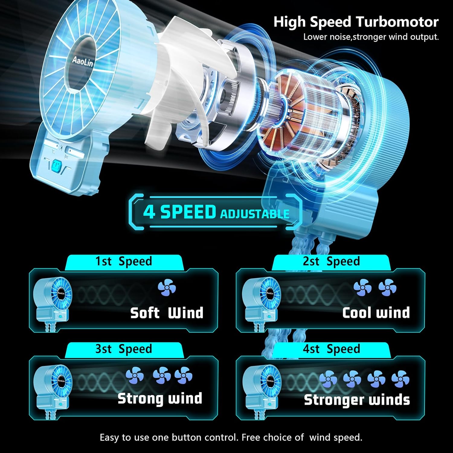 - ă4 Speeds and Quietă-AaoLin small portable fan built-in high speed brushless motor,It can provide powerful airflow but is quiet.It comes with 4 speeds for different purpose,Its highest gear has a speed of 6600rpm.Summer gifts for kids,travel beach cruise ship essentials,very practical stroller accessories!