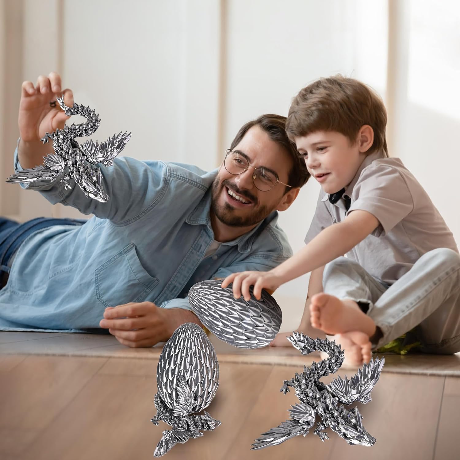 12inch Fly Dragon Egg, Year of The Dragon, 3D Printed Dragon, Executive Desk Toys, Articulated Dragon, Fidget Toys Gifts for Graduates Students Teachers Adults (Grey)