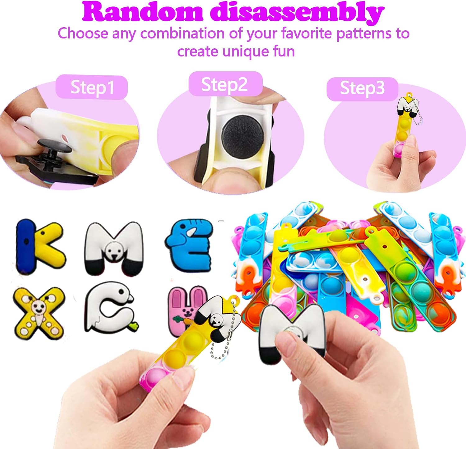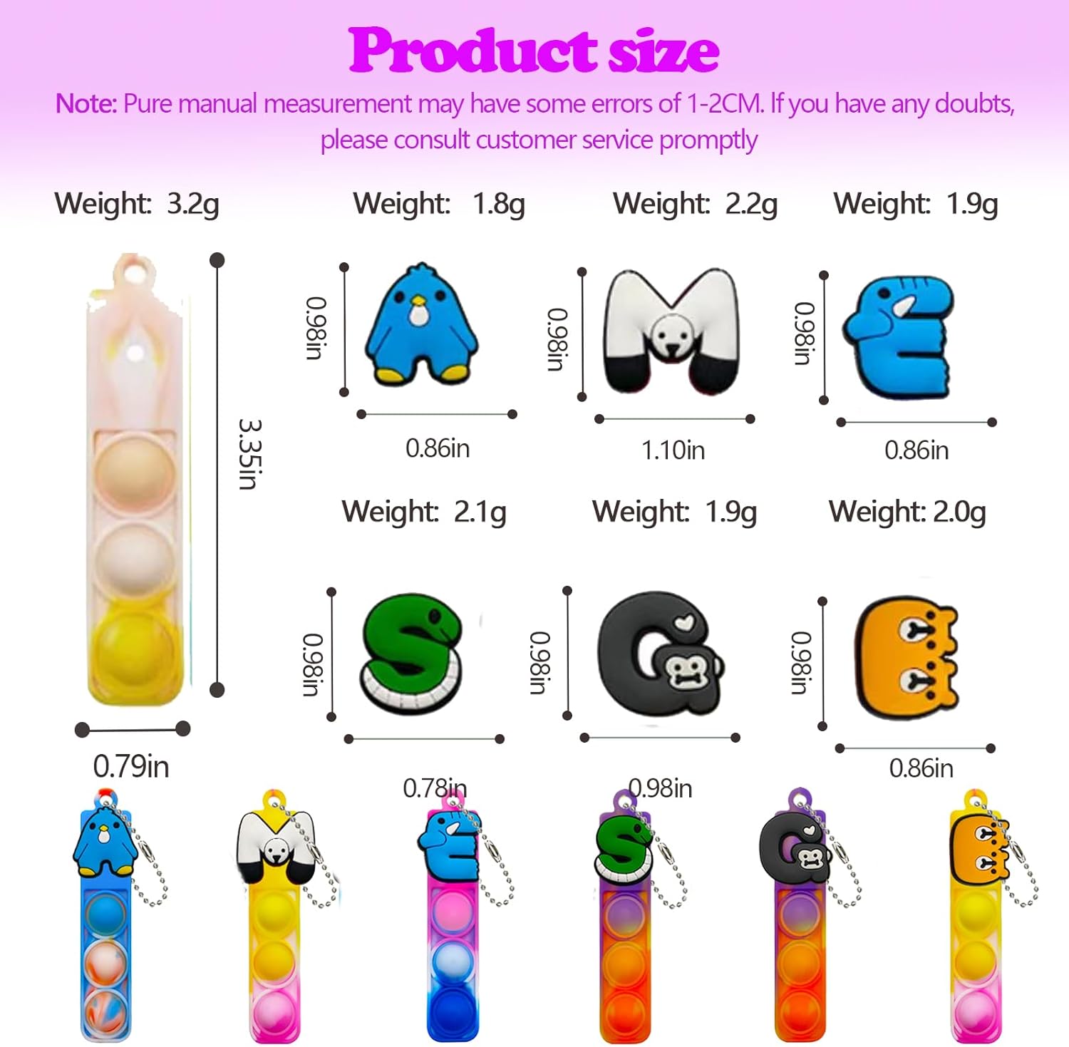 26 Pcs Mini Keychain Pop Fidget Toys for Kids, Birthday Party Favors for 3-5, 4-8, 8-12, Bulk Sensory Toys for Classroom Prizes, Party Supplies for Pinata Stuffers, Carnival Prizes (Letter)