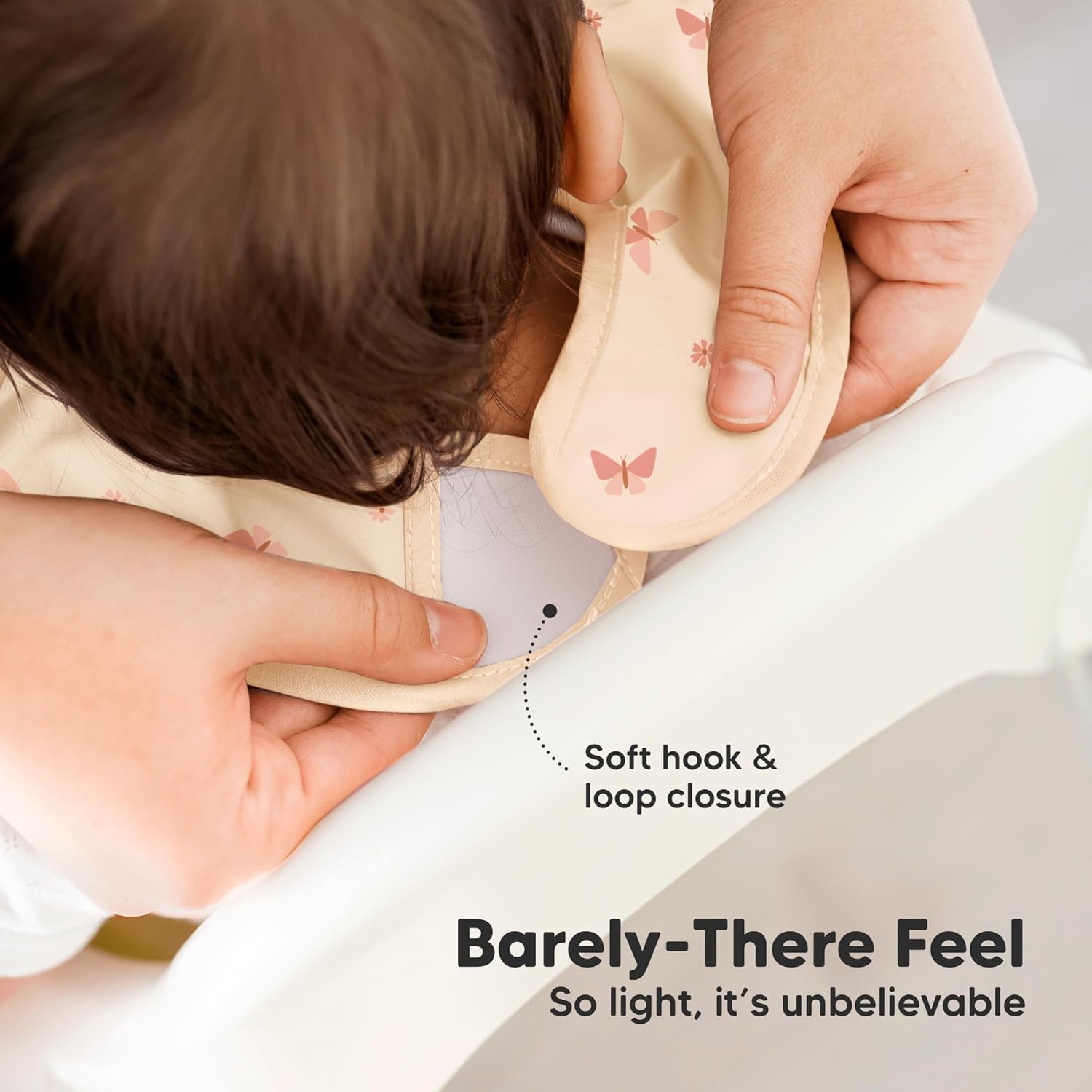 3-Pack Waterproof Baby Bibs for Eating - Lightweight Toddler Feeding Bibs with Large Food Catcher, Mess Proof, Food-Grade Baby Eating Essentials, Easy to Put On & Clean (Butterflies)