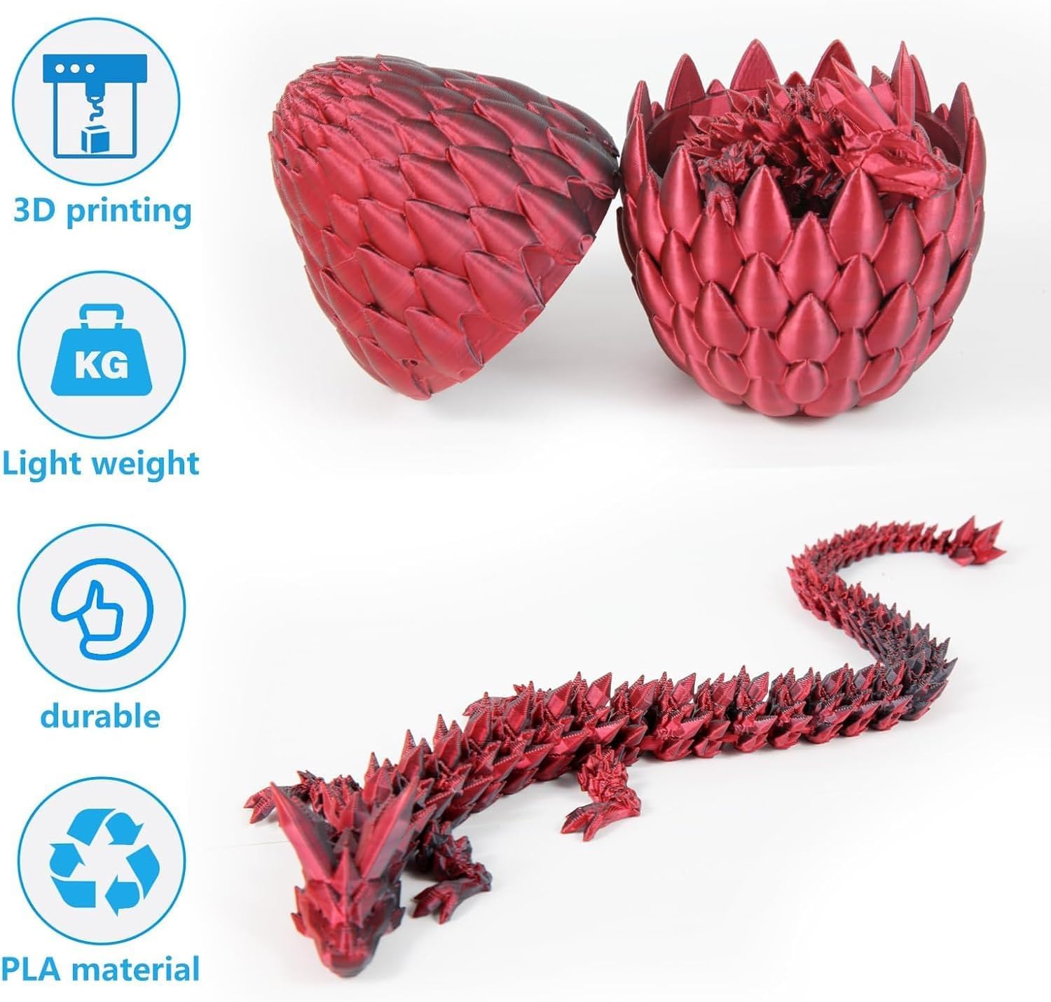 - 🐉【Dragon Egg Divine Dragon Gift Set】: 12in 3D printed dragon in 5in egg includes a dragon egg-shaped gift box and a divine dragon figurine. The dragon egg-shaped gift box adds mystery and fun, making the entire set more appealing.