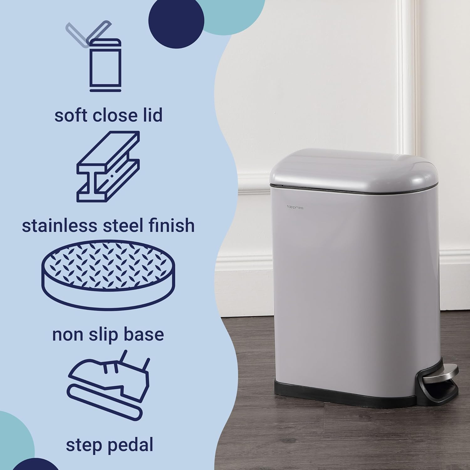 happimess HPM1009I Roland Mini 2.6-Gallon Step-Open Trash Can, Fog Gray,with Soft-Close Lid, Fingerprint Resistant, Modern, Minimalistic for Home, Kitchen, Laundry Room, Office, Bedroom, Bathroom