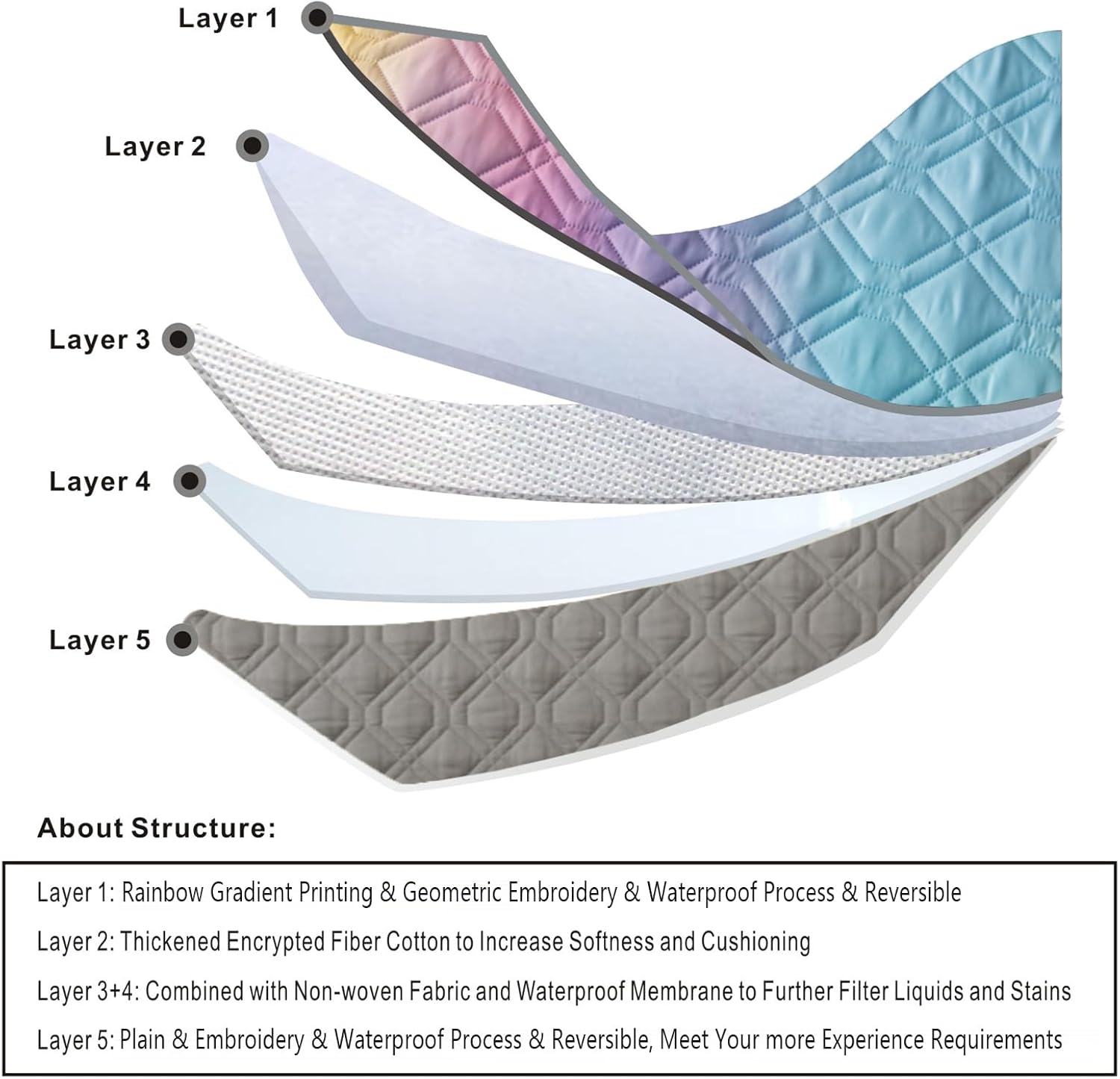 - Patchwork Rainbow Ombre Printed Dog Bed Blankets: the Second Layer Uses Thickened Encrypted Fiber Cotton to Increase Softness and Cushioning, the Thirdand Fourth Layers are Combined with Non-woven Fabric and Waterproof Membrane to Further Filter Liquids and Stains. A Multifunctional Furniture Protective Coverfor Bed / Sofa / Table / Chair / Floor / Camping... Applicable Scene: Bedroom / Living Room / Bathroom / Indoor / Outdoor...and So On...