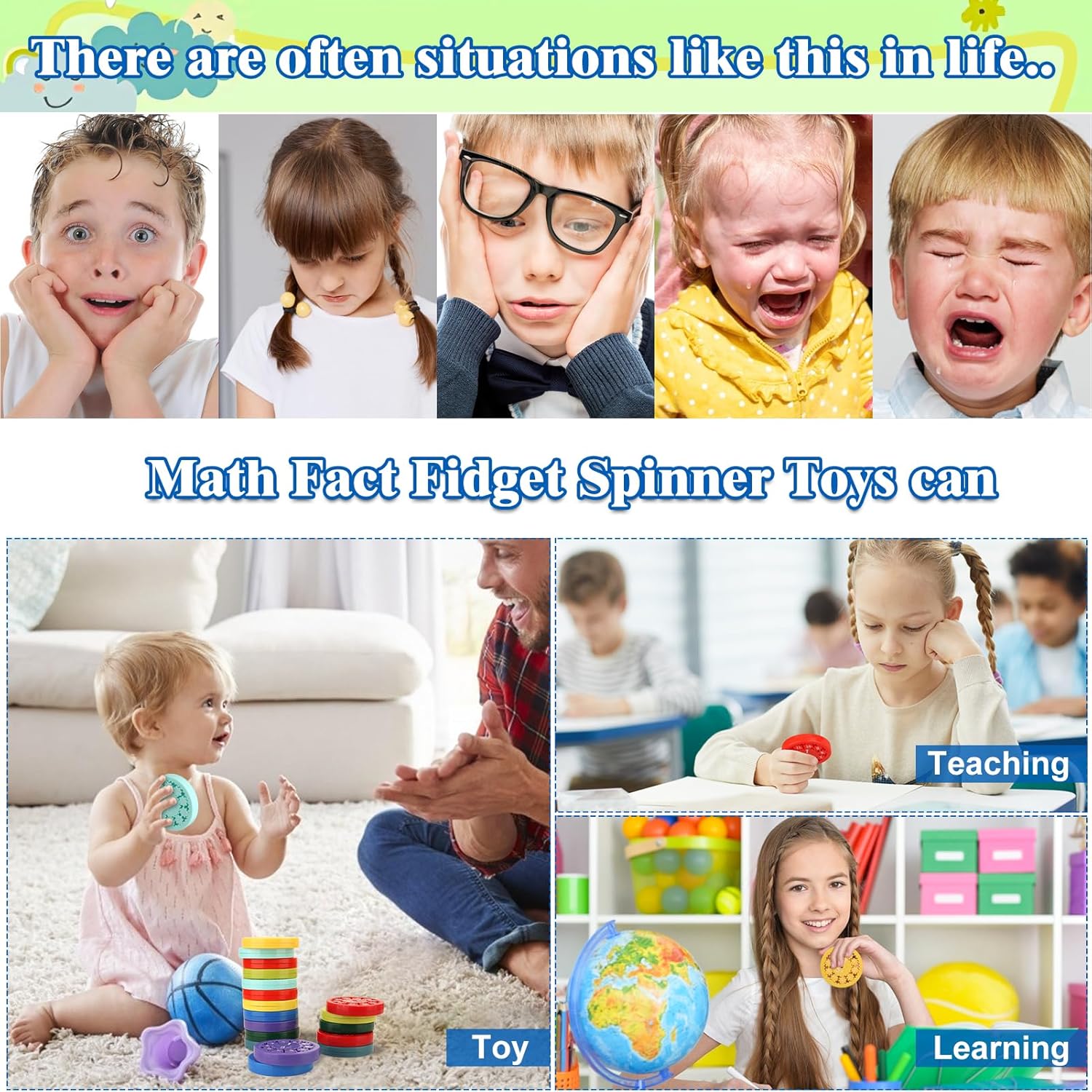 - 【Effective Educational Fun Math Fidget Spinner】-Unlike traditional fidget or stress relief gadgets, these spin math facts fidget spinners are completely modular and freestyle, different colors are not only good for improving children's attention but also your child can improve hands-on skills and stimulate creativity during play. It can be having fun for math practice anytime, relieving stress, and releasing life pressure. Finger therapy training can relieve stress reduction, ADHD, anxiety, etc.