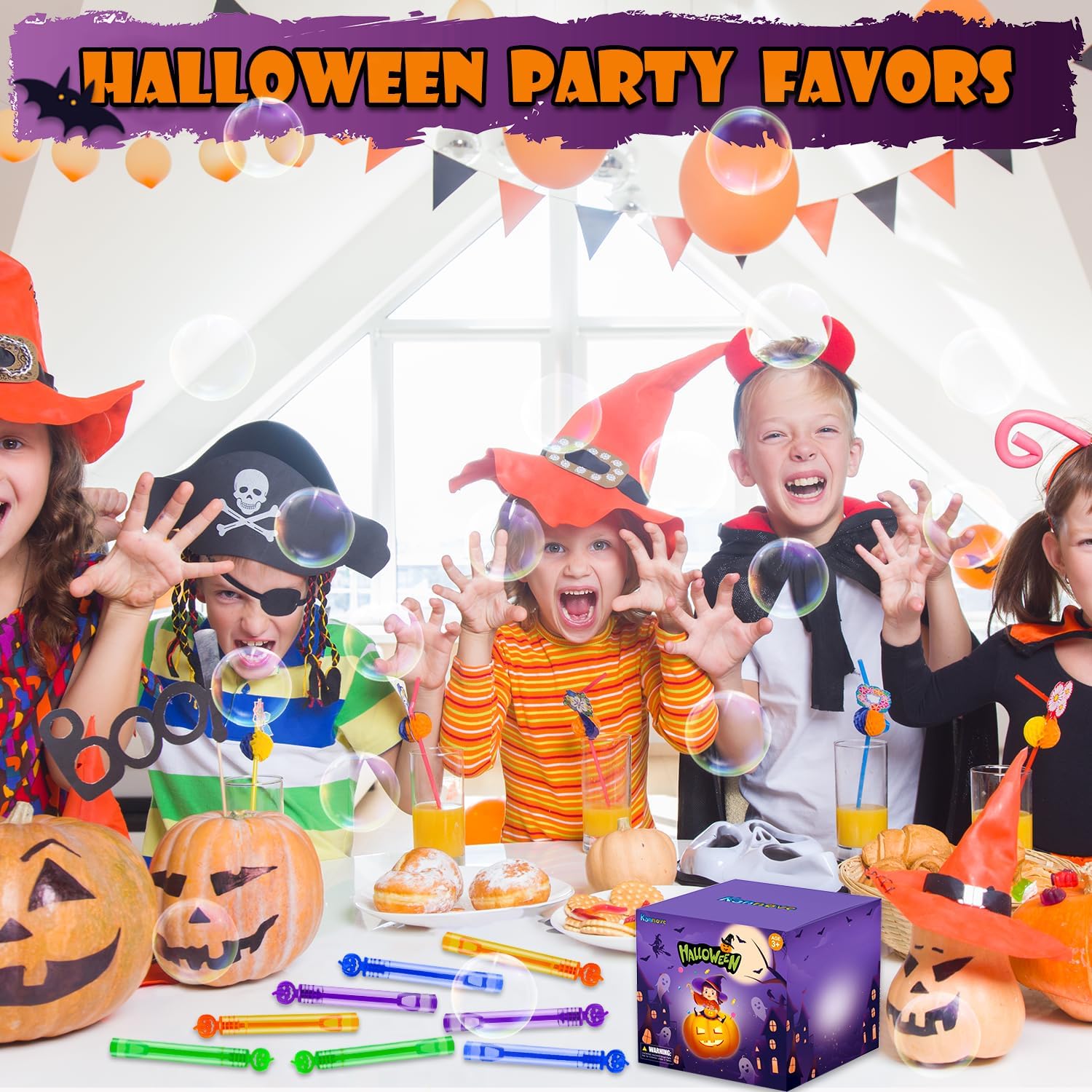 - Halloween Bubble Wands Bulk – This mega set includes over 100 mini bubble toys in assorted pumpkin styles and spooky Halloween colors—perfect for large group celebrations, party decorations, and Halloween accessories.