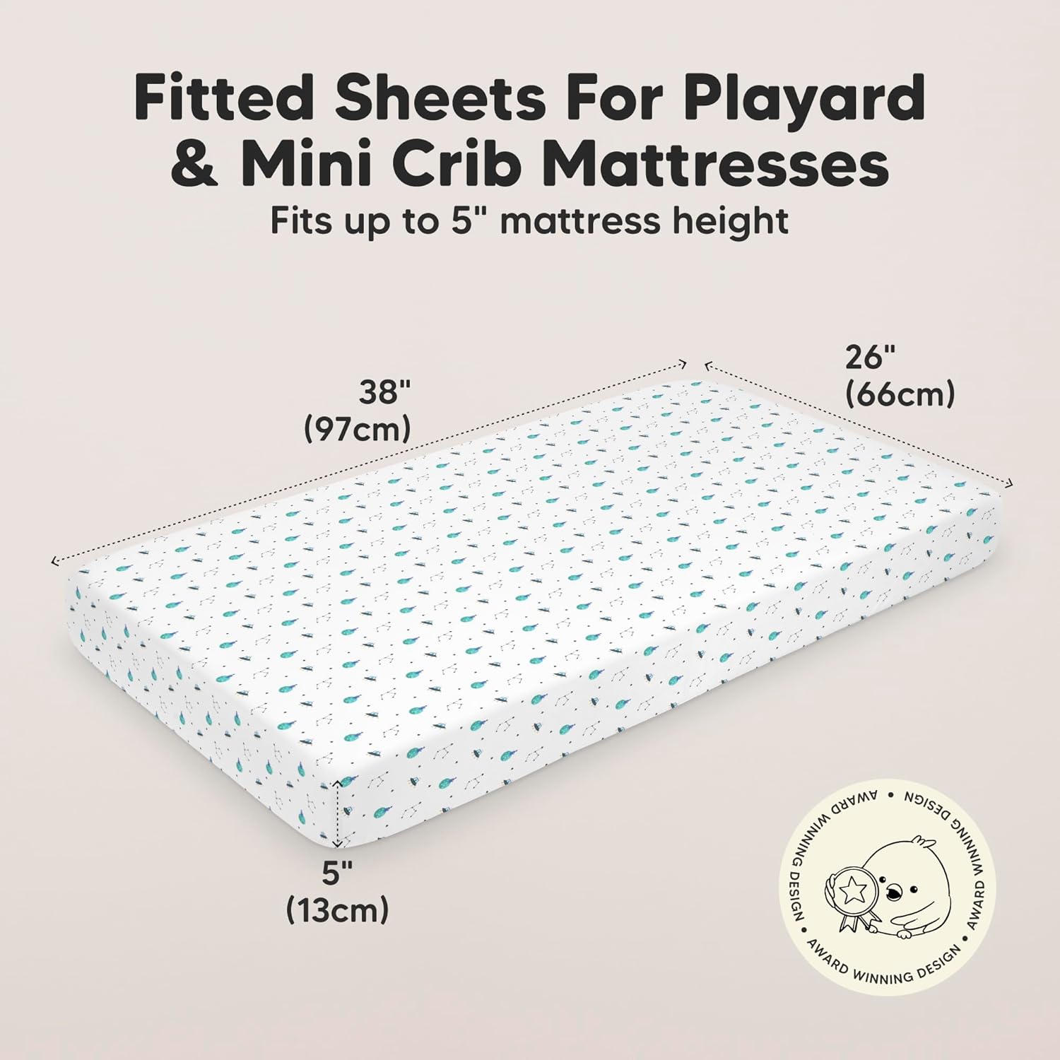 - 2-Pack Mini Crib Sheets - Each KeaBabies Soothe Mini Crib Sheets set comes with two organic mini crib sheets for boys and girls that can perfectly fit the pack and play mattress pads and mini crib mattresses sized at 38β x 26β up to 5β height.