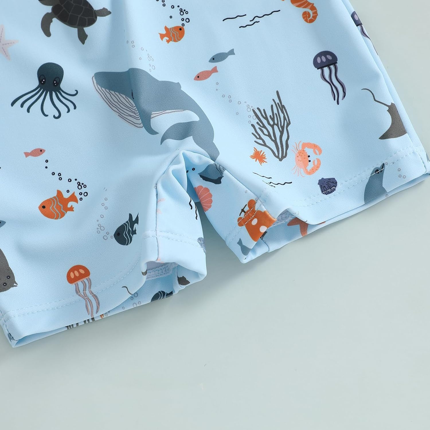 - Design: Toddler bathing suit boy, infant long sleeve swimsuit boy, round neck, back/front zipper closure for easy on and off, newborn swimsuit boy, dinosaur/marine animal print, super cute and lovely, your little boy will stand out in the crowd