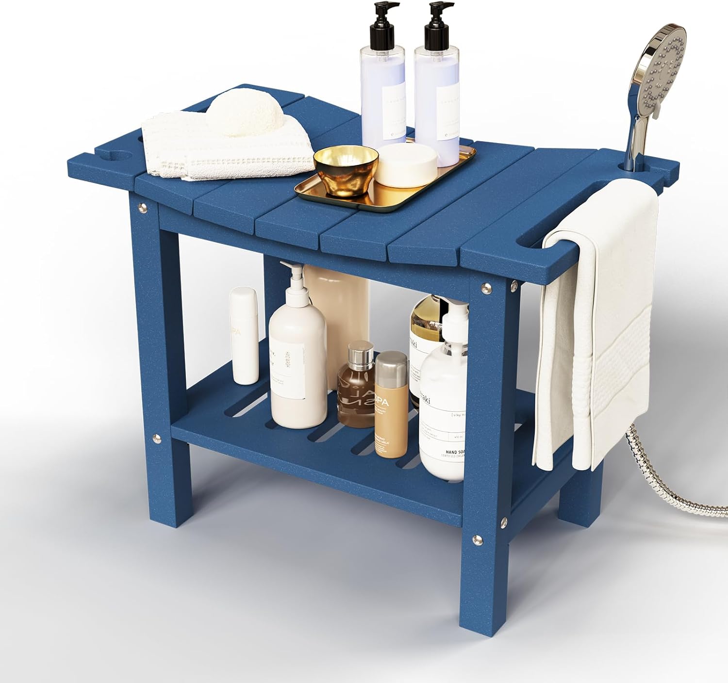 HDPE Shower Bench Stool for Inside Shower, Non-Slip Shower Stool for Shaving Legs with Storage Shelf, Waterproof Shower Chair Spa Bath Seat for Indoor & Outdoor Use (Navy)