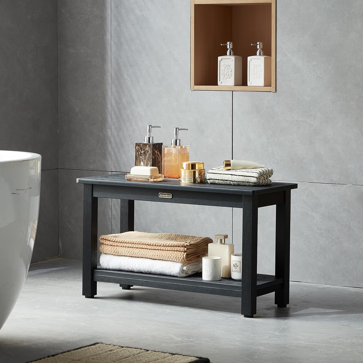 - ăPlus size & Adjustable FeetăLarger size: 30*13 inches, which can bear more load (Weight capacity is about 700LBS), double-layer super large space, Water Resistant & Non-fade:The shower seat has strong water resistance, can be safely washed with water, and is made of 100% polystyrene material, without using any paint, so it will never fade. It adds 4 adjustable rubber feets which can protect your floor to scratch.