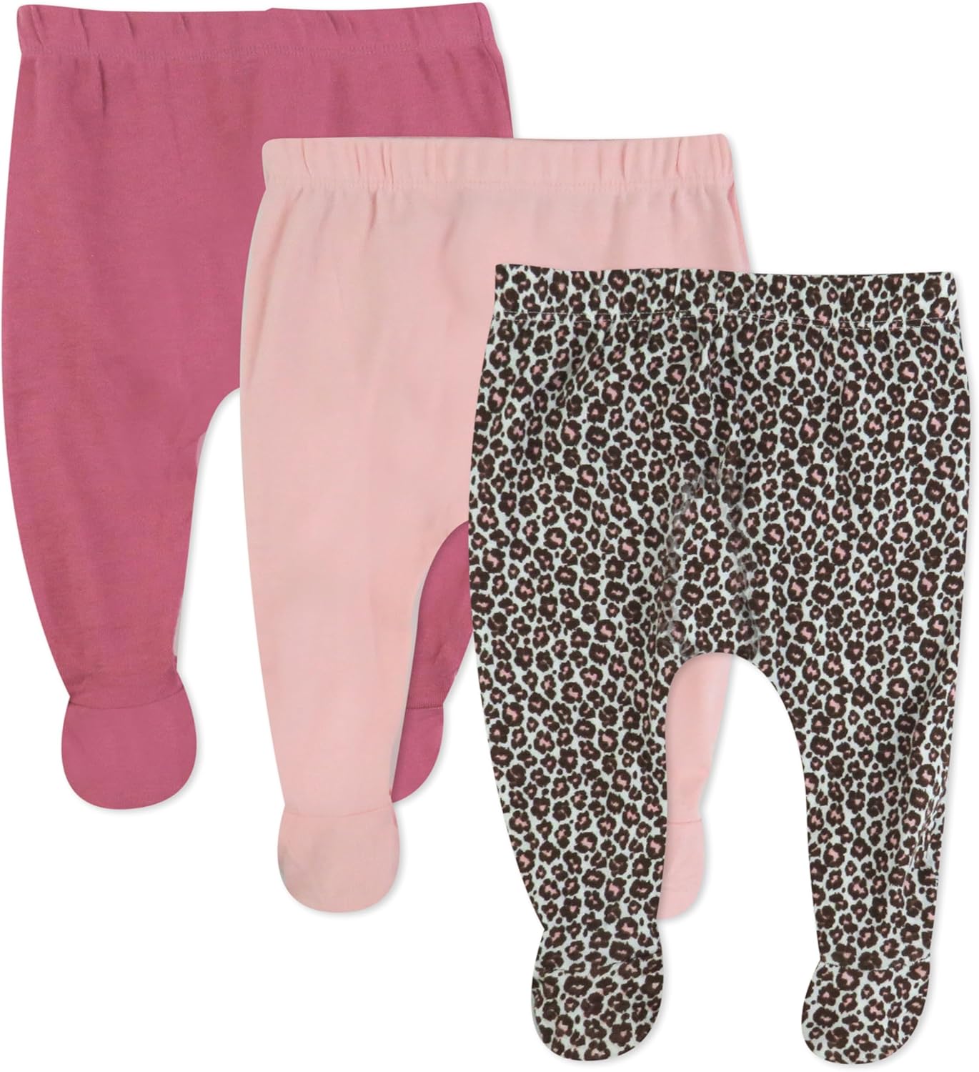 HonestBaby 3-pack Footed Pants Roomy Fit Pull on Bottoms 100% Organic Cotton for Infant Baby Boys, Girls, Unisex