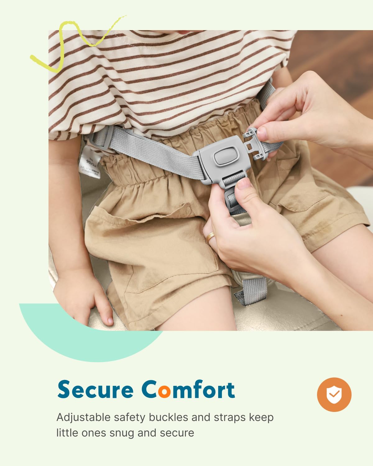 - Secure & Stable: 3-point adjustable harness with front buckle and non-slip base ensures secure fit on booster seat for kitchen chair. Support kids for worry-free mealtimes