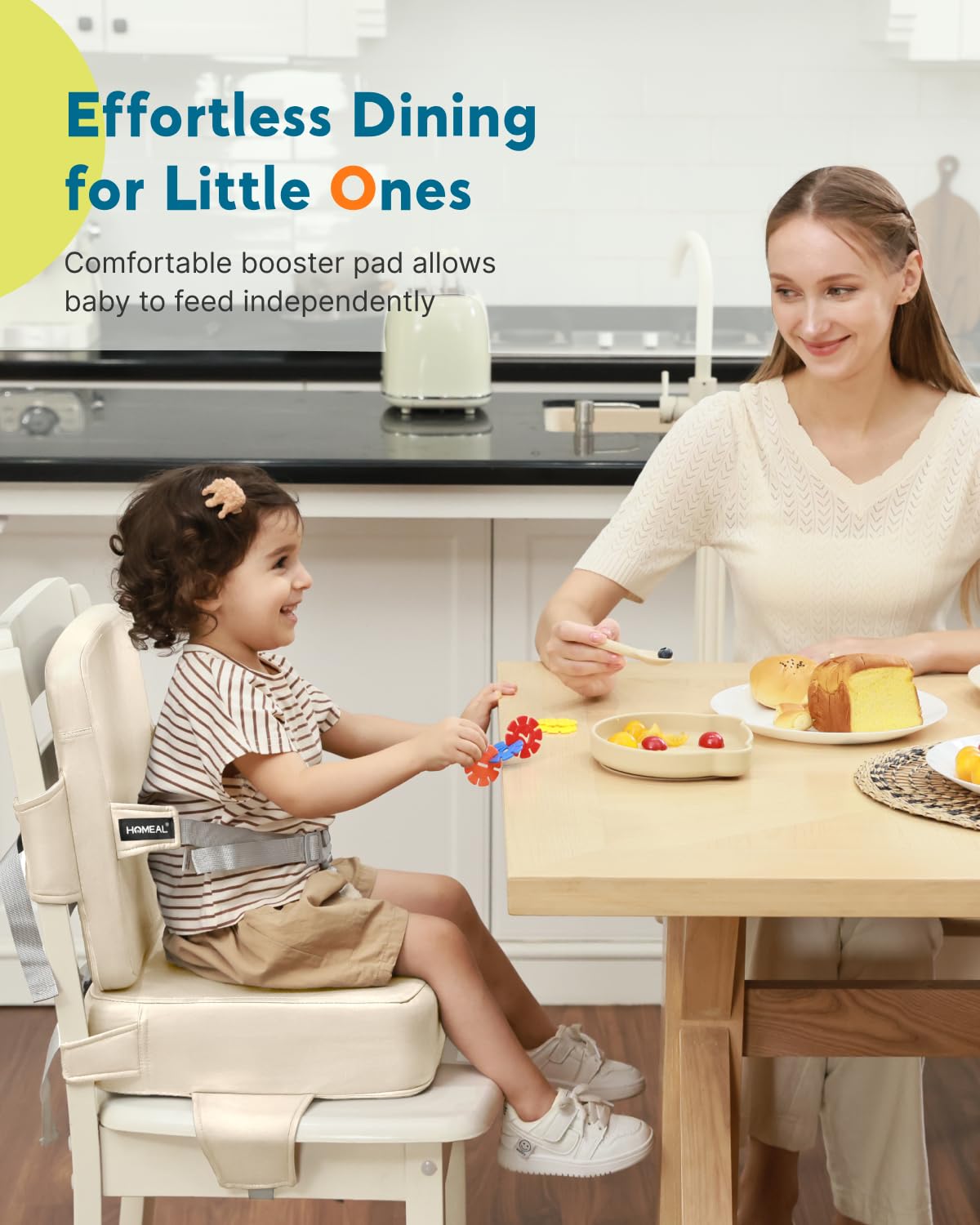 HOMEAL Toddler Booster Seat for Dining Table - Toddler Dining Cushion with Wipeable Surface -Booster Seat for Kitchen Chair with Easy-Install Straps - Breathable Fabric - Beige