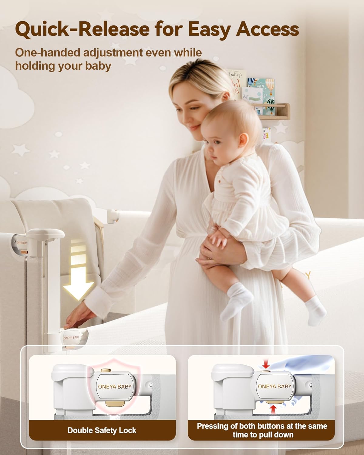 - Single-Side Lifting Functionality-The bed rail for baby can be easily lifted from a single side, enabling mothers to handle their babies with ease. Changing bed sheets is a breeze as there's no need to disassemble the rail; simply lift it up, slide out the sheet, and you're done. Moreover, toddler bed guard rail doesn't obstruct sitting on the bed, allowing for unobstructed entry and exit.